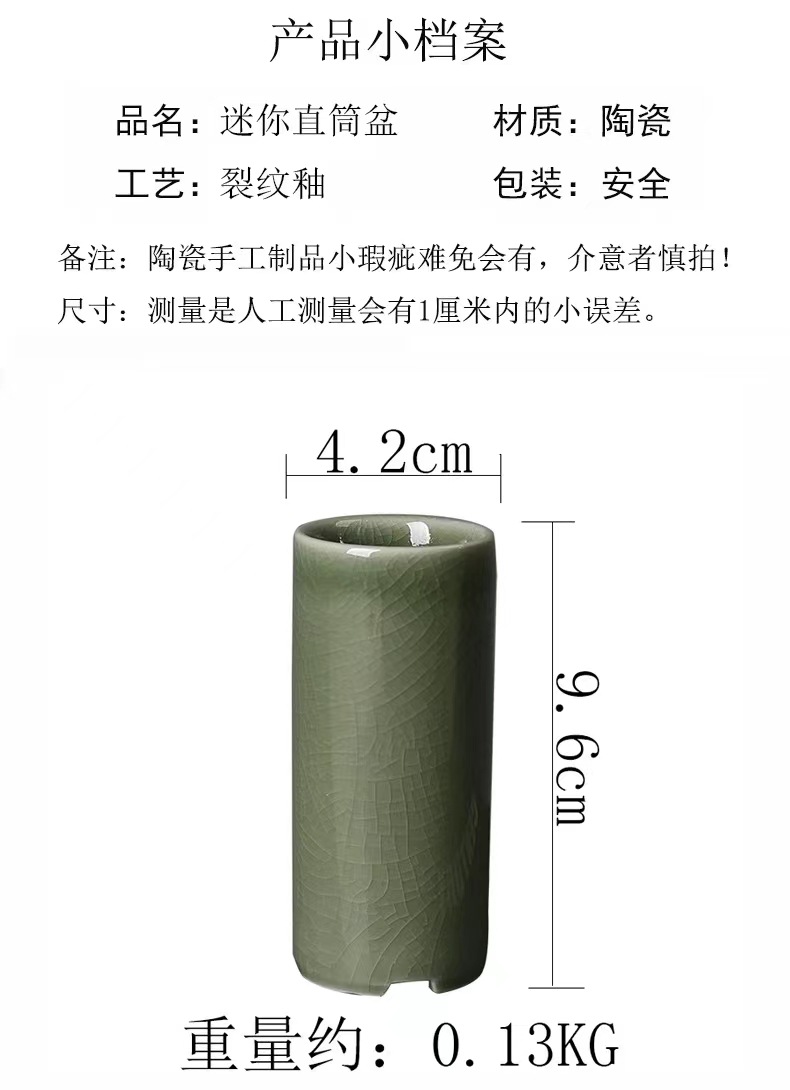 • 미니 작은 스트레이트 튜브 얼음 크래킹 유약 꽃 냄비 [녹색] 싱글
