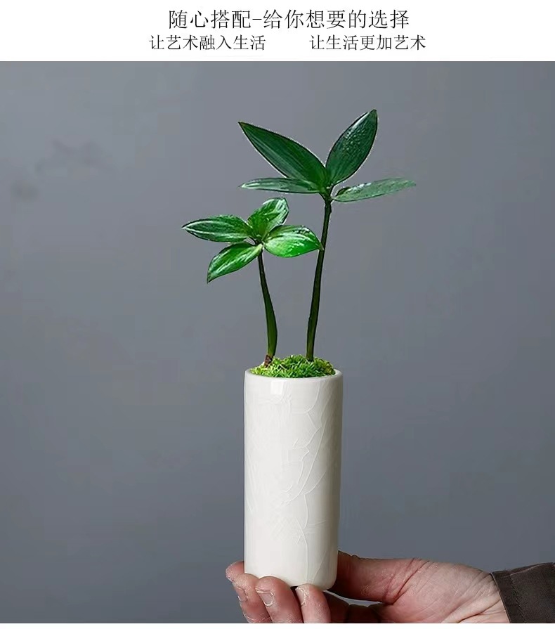 작은 스트레이트 튜브 얼음 크래킹 유약 미니 꽃 냄비 다육 녹색 식물 대나무와 사이프러스 호텔 꽃 창조적 인 세라믹 데스크탑 화분 구멍스토어 가기