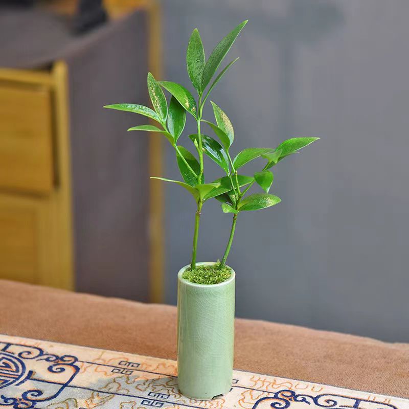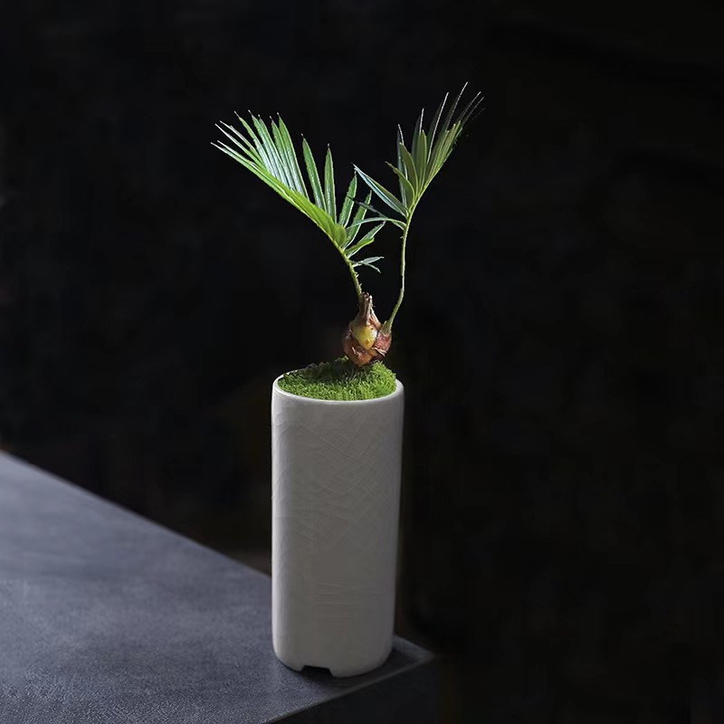 작은 스트레이트 튜브 얼음 크래킹 유약 미니 꽃 냄비 다육 녹색 식물 대나무와 사이프러스 호텔 꽃 창조적 인 세라믹 데스크탑 화분 구멍