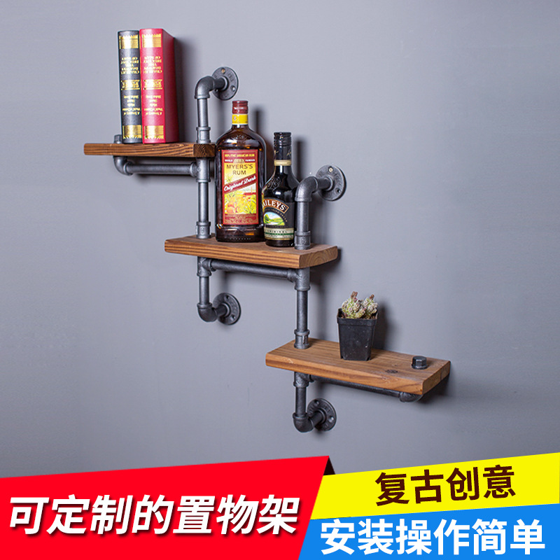 빈티지 철 물 파이프 저장 랙 벽 장식 벽 교수형 책꽂이 다층 저장 랙 산업용 풍력 파이프 디스플레이 랙스토어 가기