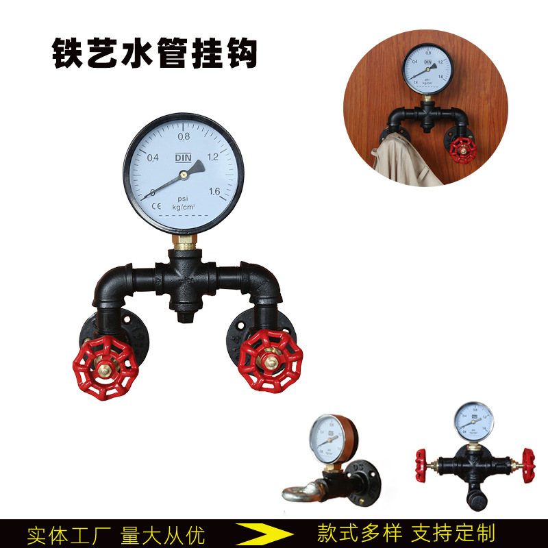 亚马逊水管挂钩铁艺衣帽挂钩工业风墙壁挂钩置物架复古挂衣勾