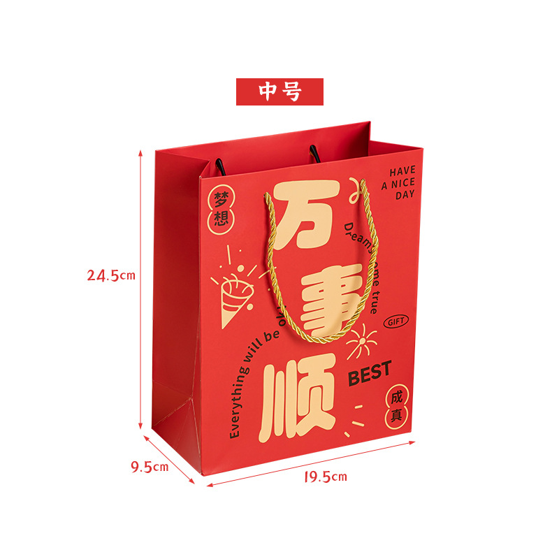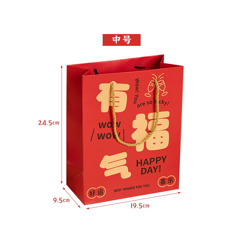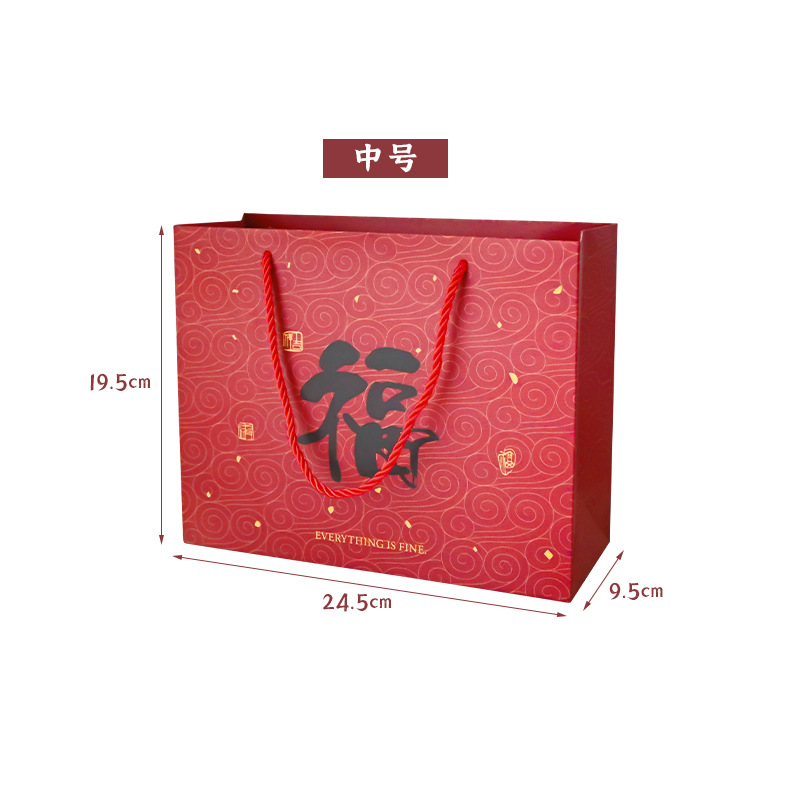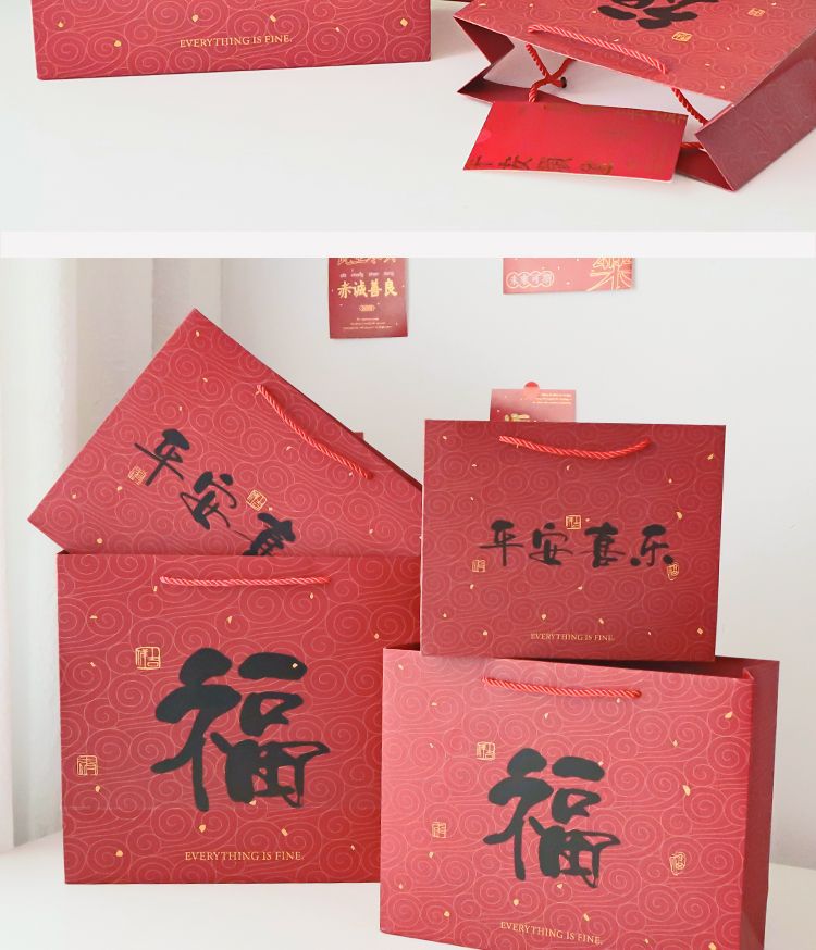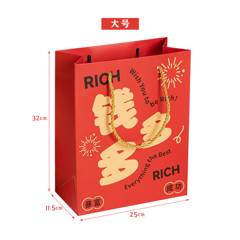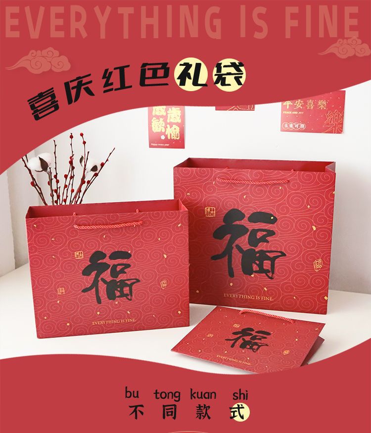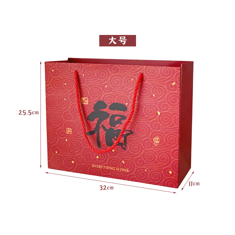 새해 축제 선물 가방 두꺼운 하드 카드지 선물 종이 가방 인스 레드 고급 핸드백 포장 가방