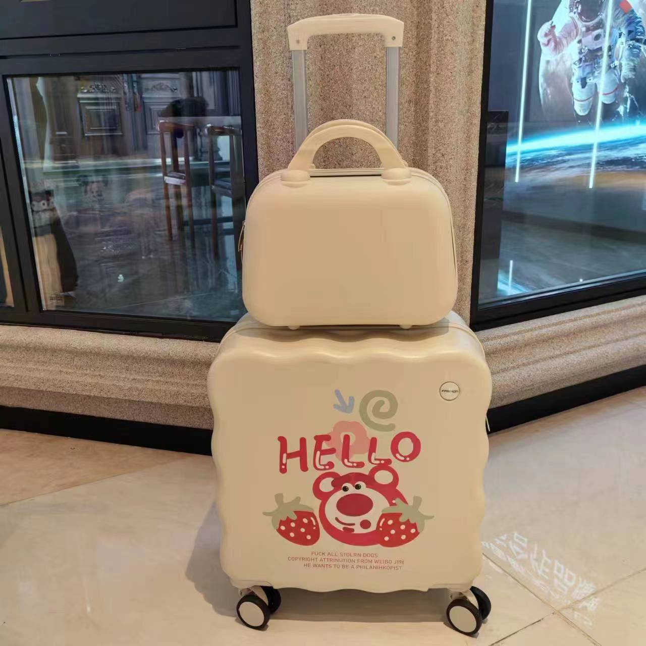 수하물 20inch 짧은 여행 작은 트롤리 케이스 여성 어린이 만화 가방 경량 탑승 케이스 남성 지퍼스토어 가기