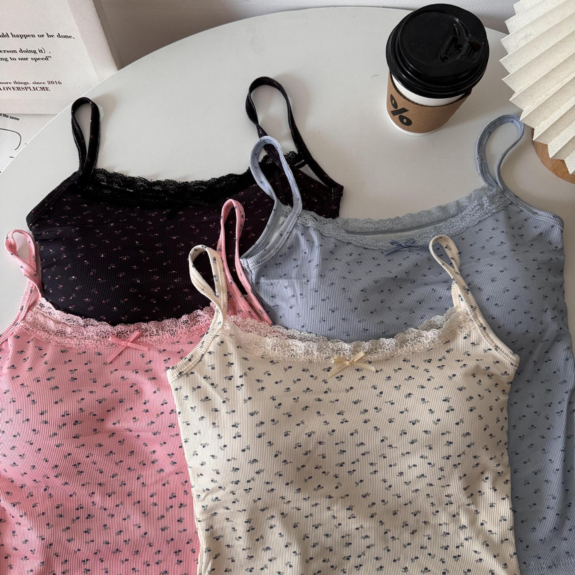 한국식 꽃 작은 카미솔 여성용 아름다운 서스펜더 가슴 패드 레이스 고정 컵 눈부심 스파이스 소녀 쇼트 탑스토어 가기
