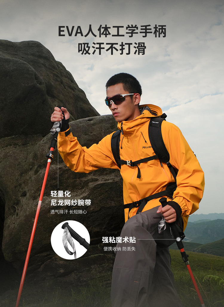 [Mountain Wings] Pelliot 야외 트레킹 폴 하이킹 및 등산 장비 접이식 미끄럼 방지 탄소 섬유 워킹 폴