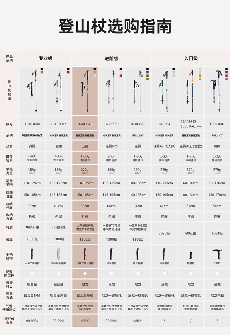 [Mountain Wings] Pelliot 야외 트레킹 폴 하이킹 및 등산 장비 접이식 미끄럼 방지 탄소 섬유 워킹 폴스토어 가기