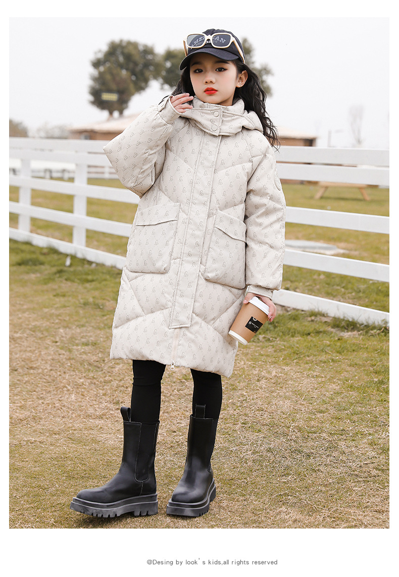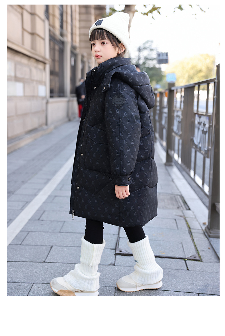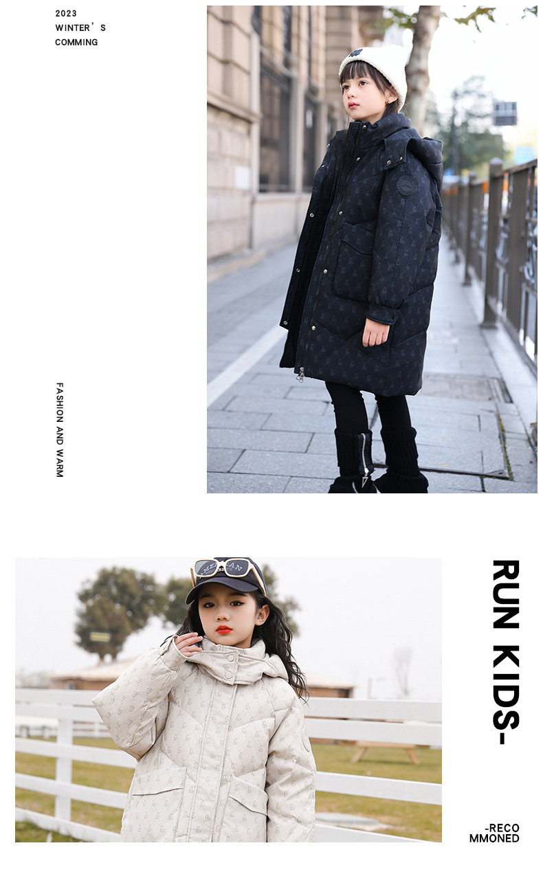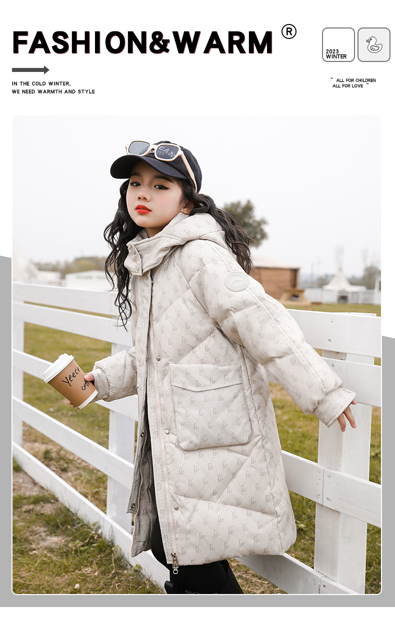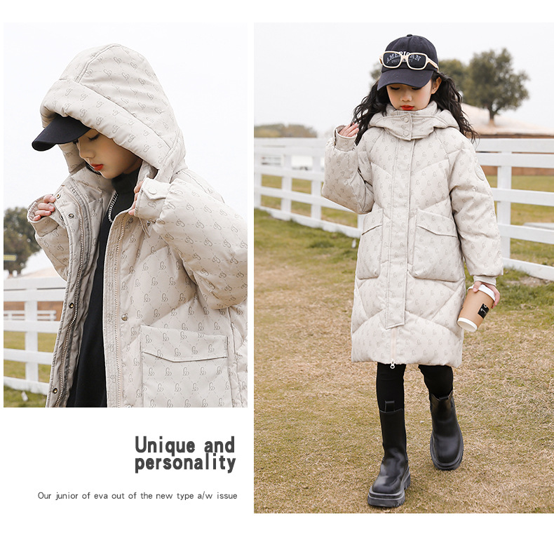 어린이 다운 자켓 걸스 중간 길이 2024 새 한국식 소녀 화이트 덕 다운 아기 스타일리징 두꺼운 코트 트렌디스토어 가기