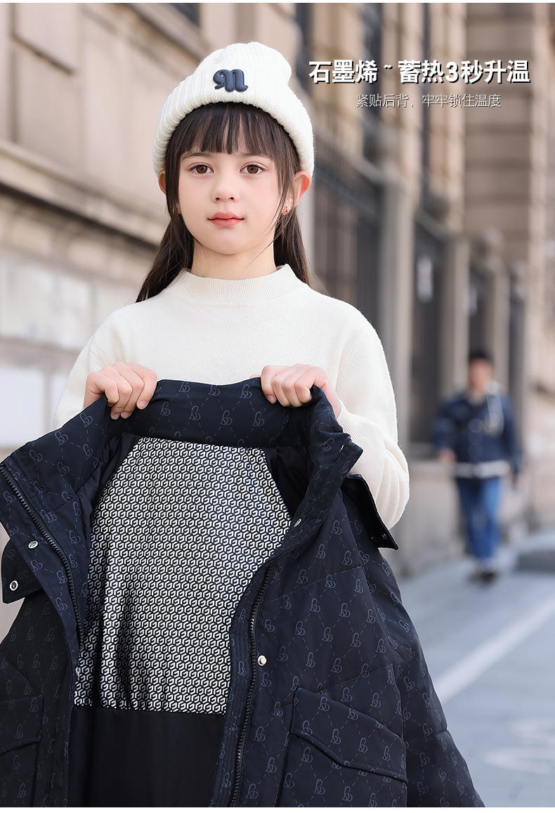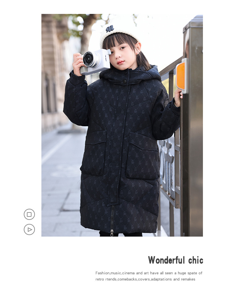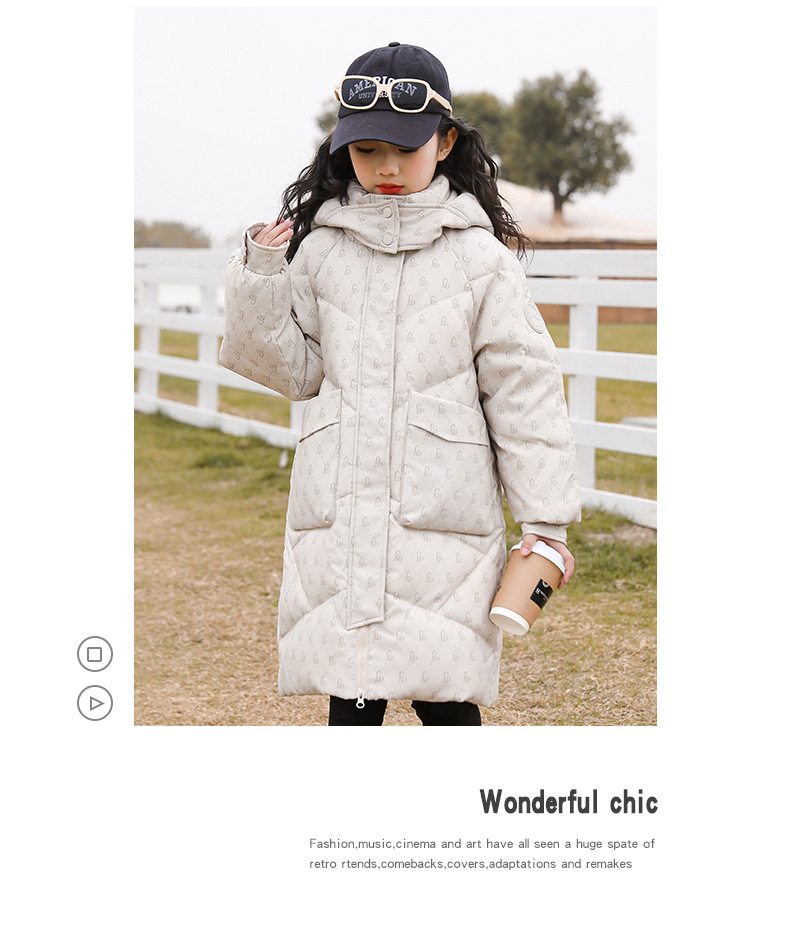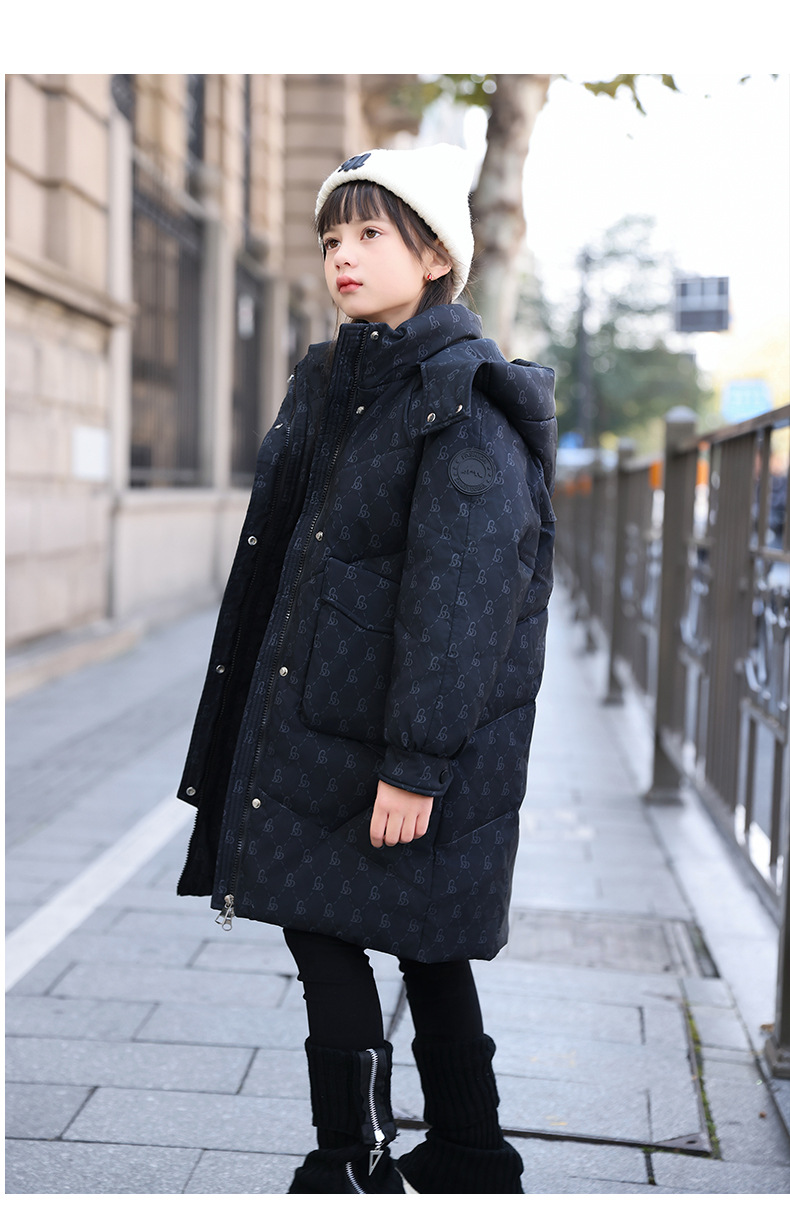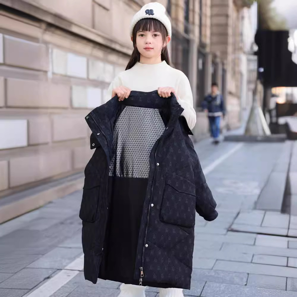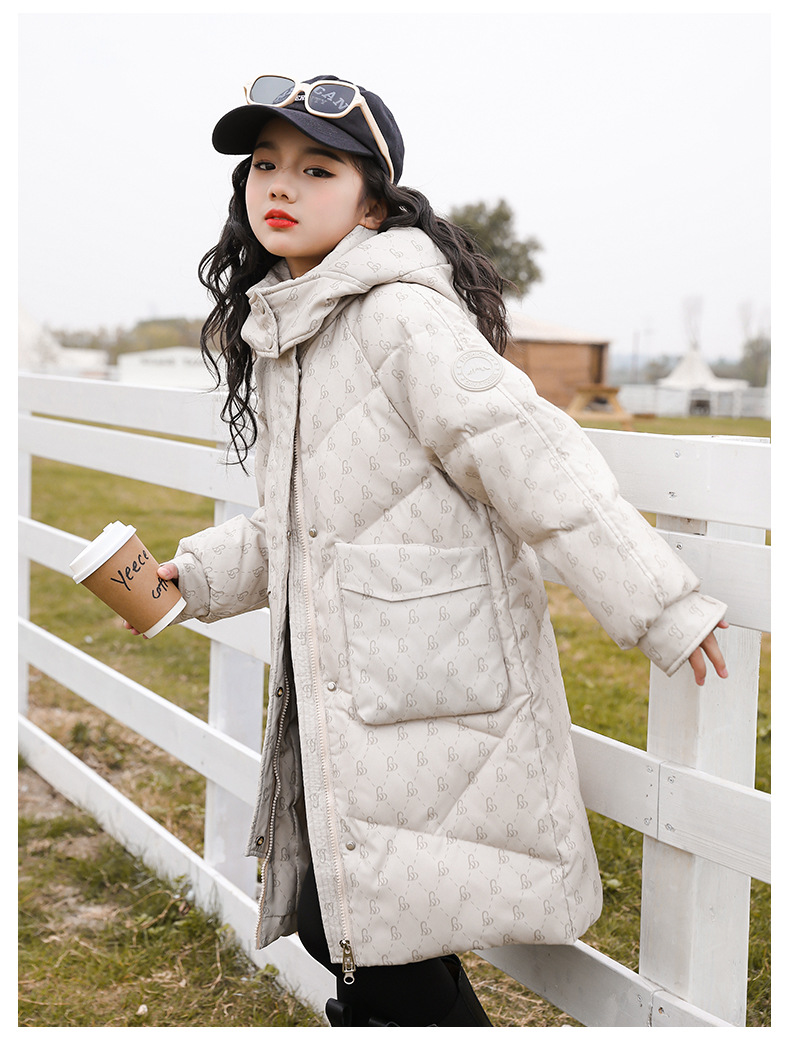 어린이 다운 자켓 걸스 중간 길이 2024 새 한국식 소녀 화이트 덕 다운 아기 스타일리징 두꺼운 코트 트렌디스토어 가기