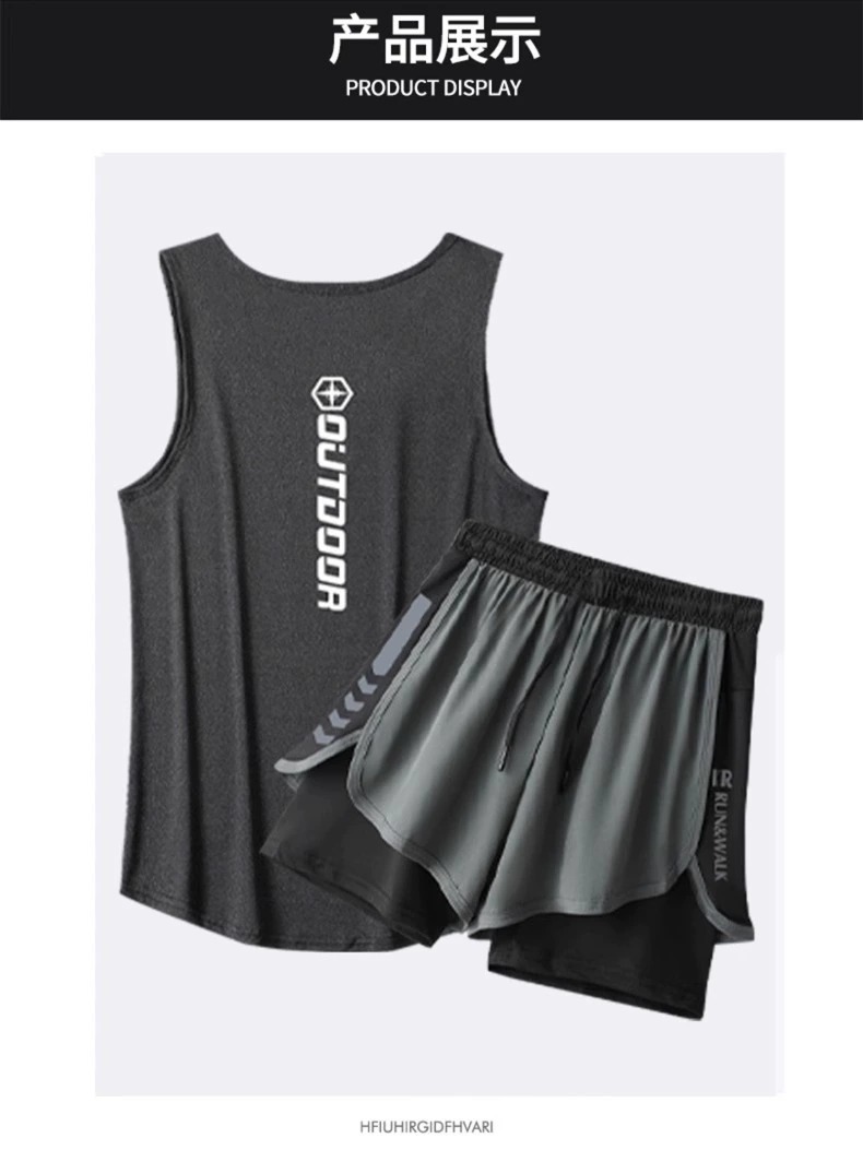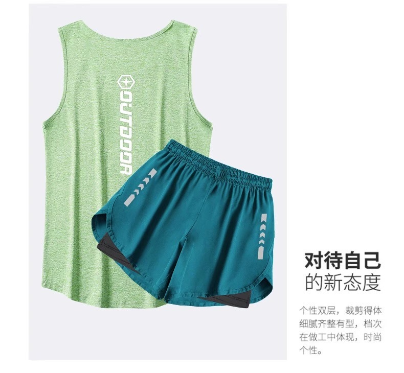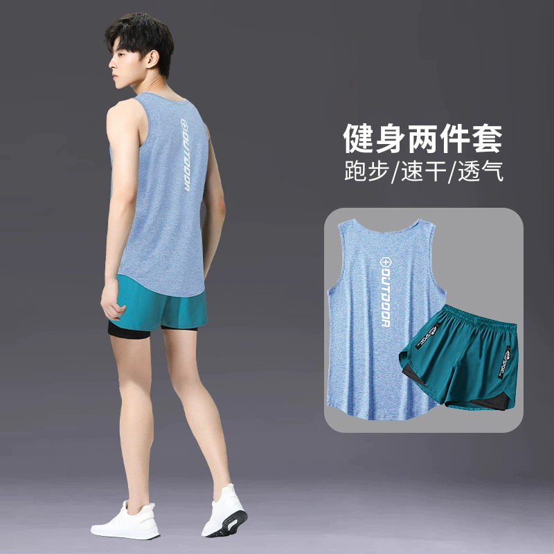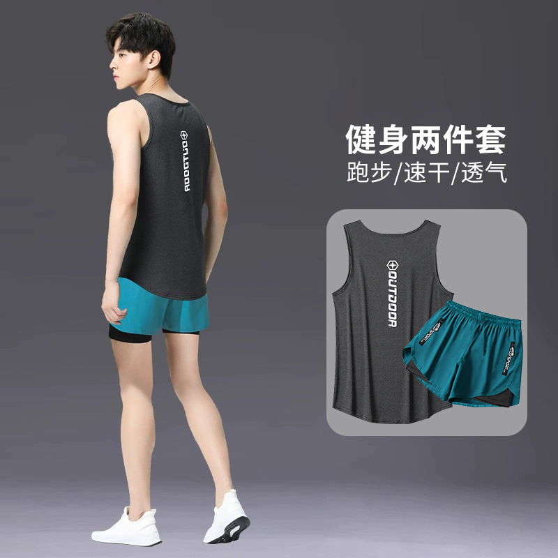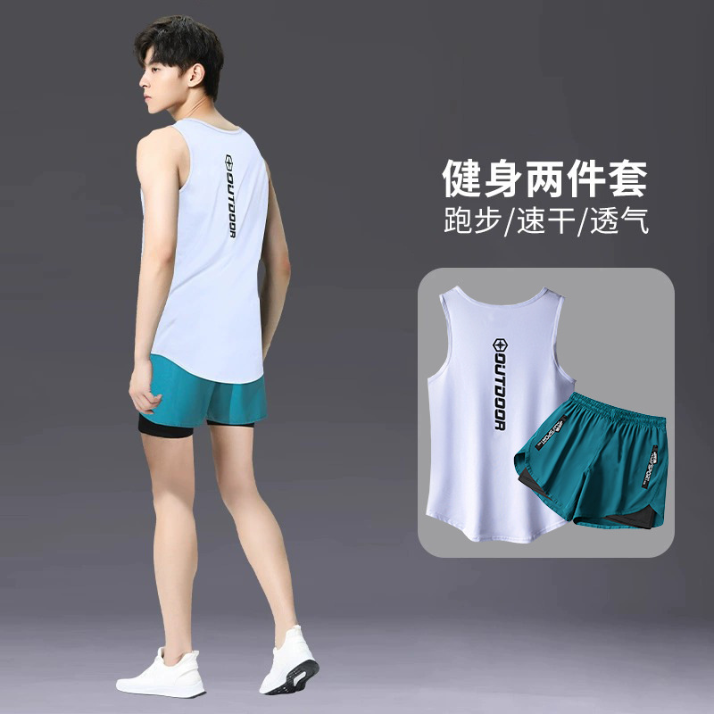 피트니스 옷 남자 조끼 마라톤 육상 여름 훈련 반바지 빠른 건조 달리기 장비 스포츠 세트 빠른 건조