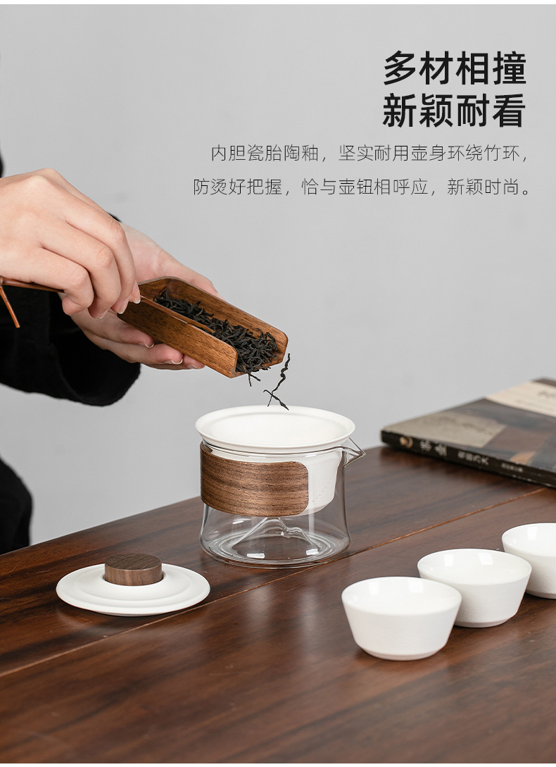 휴대용 여행 차 세트 작은 세트 간단한 야외 유리 주전자 차 컵 개인 특별 캠핑 익스프레스 컵