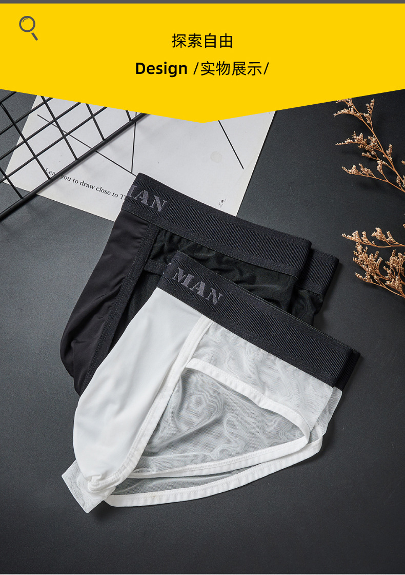 남자 아이스 실크 반투명 얇은 메쉬 싱글 레이어 U 볼록 가방 낮은 허리 통기성 스포츠 섹시한 브리프 속옷스토어 가기