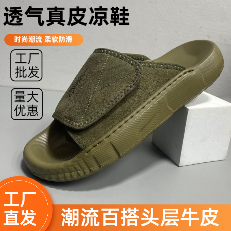 2024 년 여름 새로운 도착 슬리퍼 남성 정품 통기성 정품 가죽 샌들 청소년 올매치 한국식 패션 영국식 슬리퍼