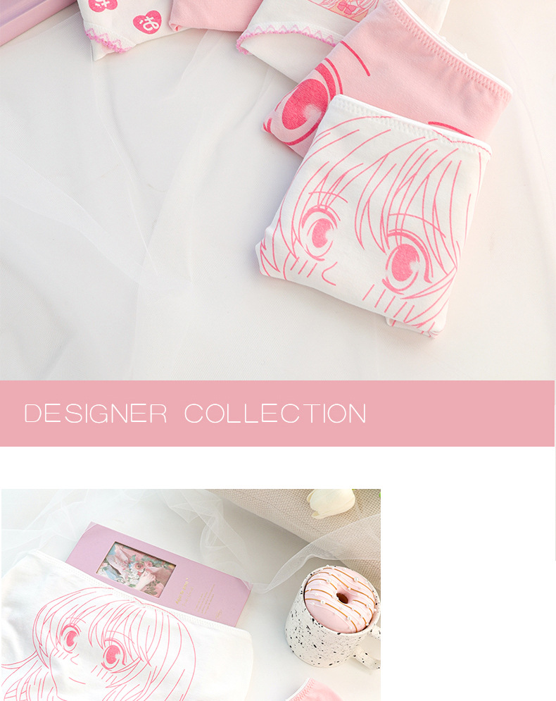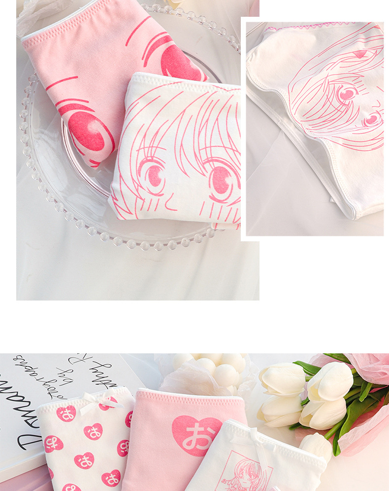 순면 가랑이 부분에 만화 캐릭터가 있는 귀여운 소녀풍, 2차원, 플러스 사이즈, 부드러운 소녀, 로리, 학생, 핑크색 애니메이션 삼각팬티스토어 가기