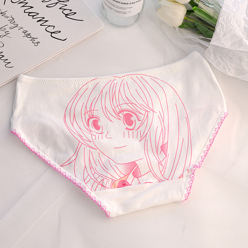 순면 가랑이 부분에 만화 캐릭터가 있는 귀여운 소녀풍, 2차원, 플러스 사이즈, 부드러운 소녀, 로리, 학생, 핑크색 애니메이션 삼각팬티