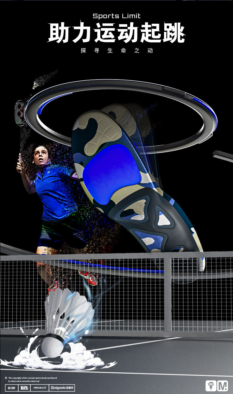 McGaole 배드민턴 특수 인솔 높은 비틀림 방지 비상 정지 비상 정지 강력한 TPU 지원 아치 스톱 슬립 하이 탄성