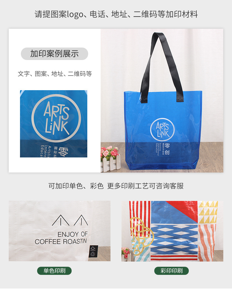 PVC 레이저 핸드백 전시회 쇼핑백 로고 인쇄 기념품 선물 포장 가방 맞춤 인쇄