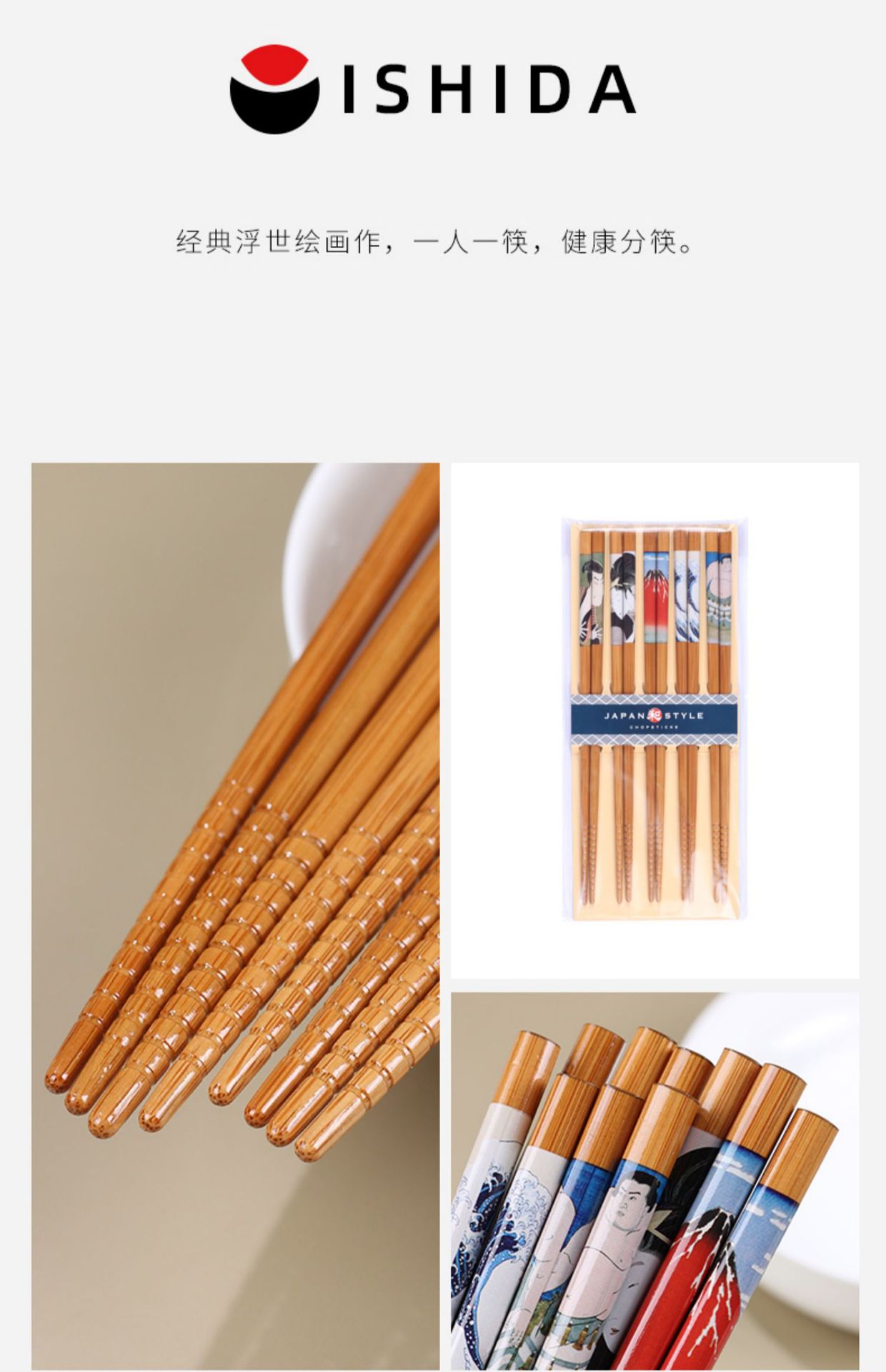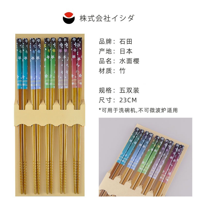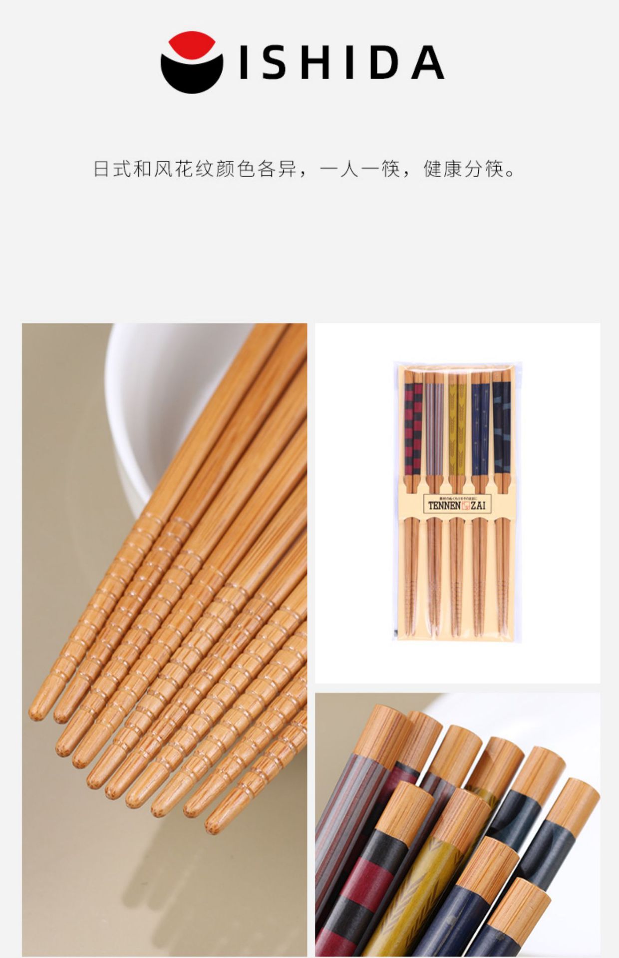 Ishida (Ishida) 일본 수입 가정용 천연 대나무 젓가락 식기 세척기 뾰족한 미끄럼 방지 고급 식기 세척기