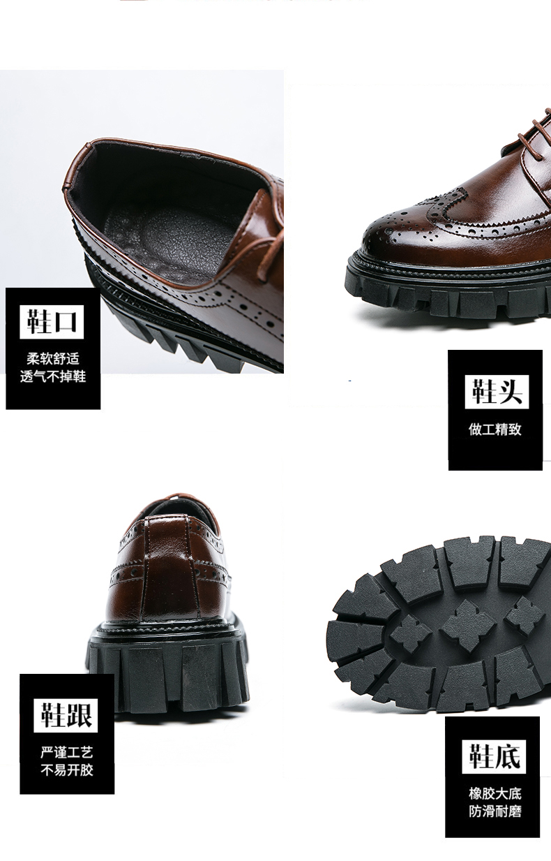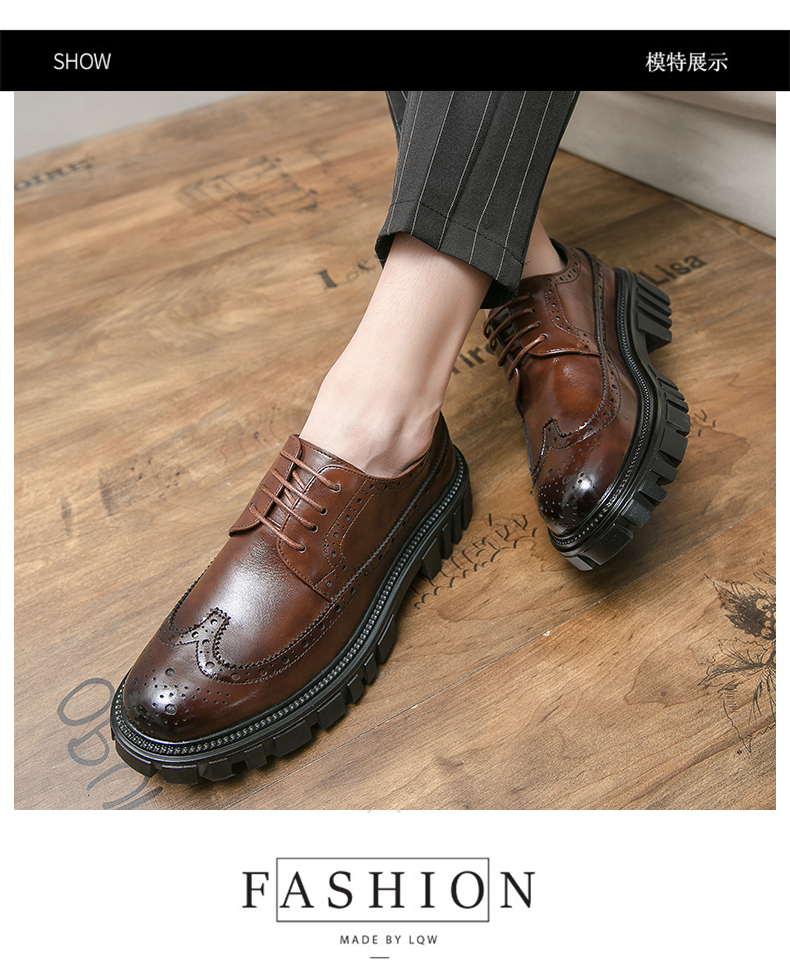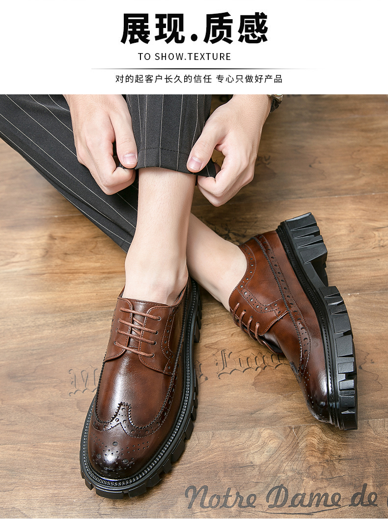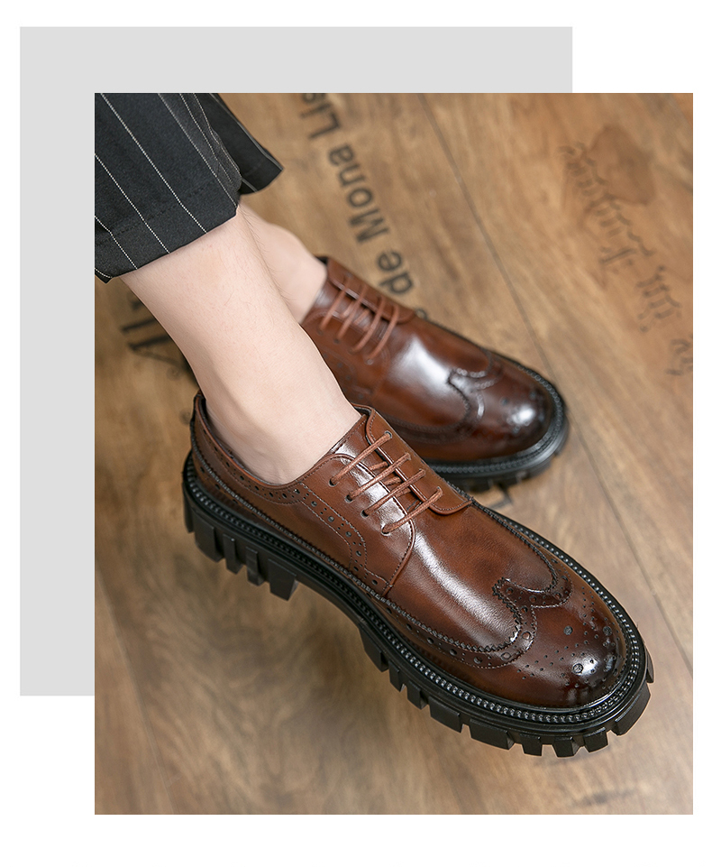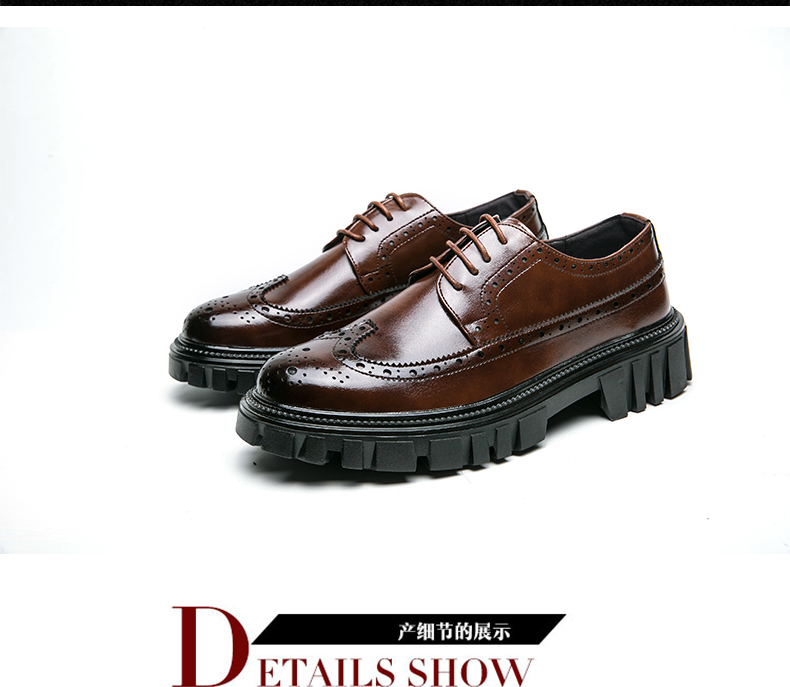 브록 조각 가죽 신발 남성 비즈니스 원피스 청소년 다크 브라운 캐주얼 영국 두꺼운 밑창 강화 웨딩 신발의