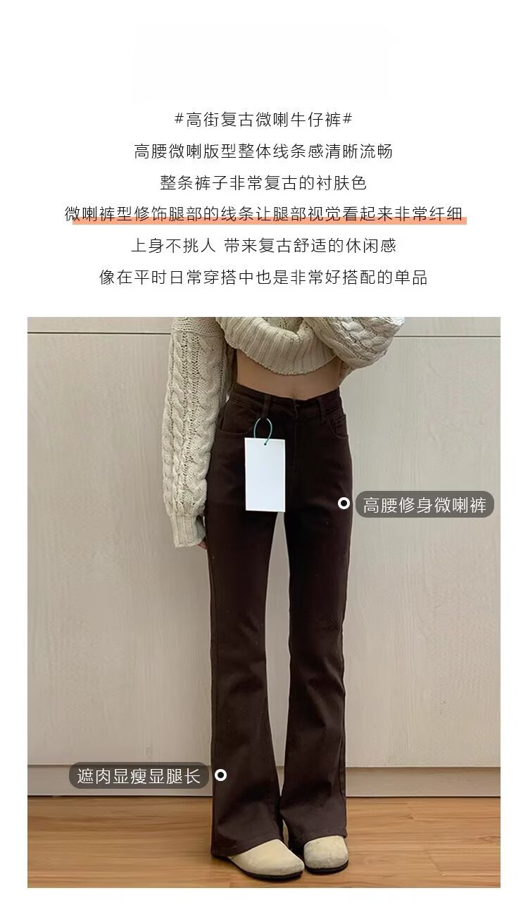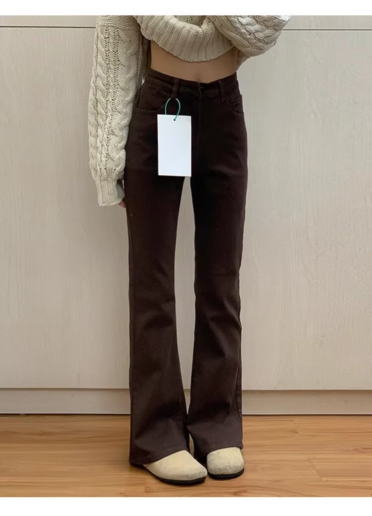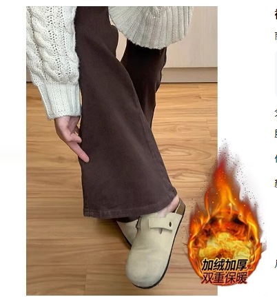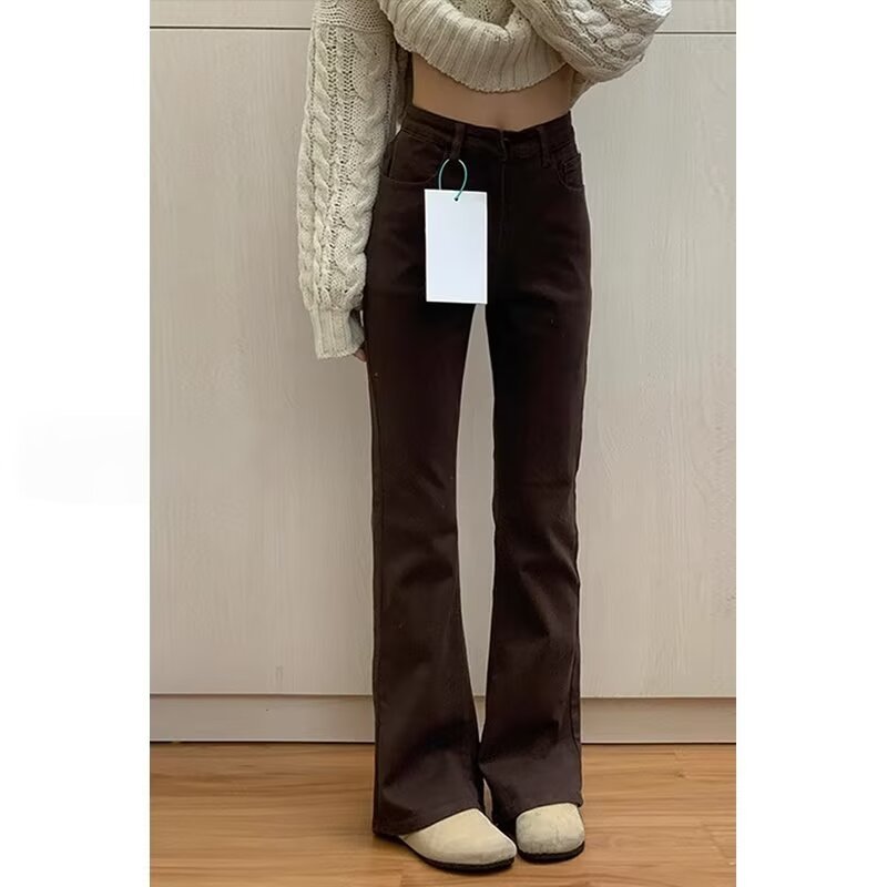 여성용 가을 겨울 신상 하이웨이스트 일자핏 슬림핏 플러스 사이즈 빅사이즈 기모 마이크로 플레어 청바지스토어 가기