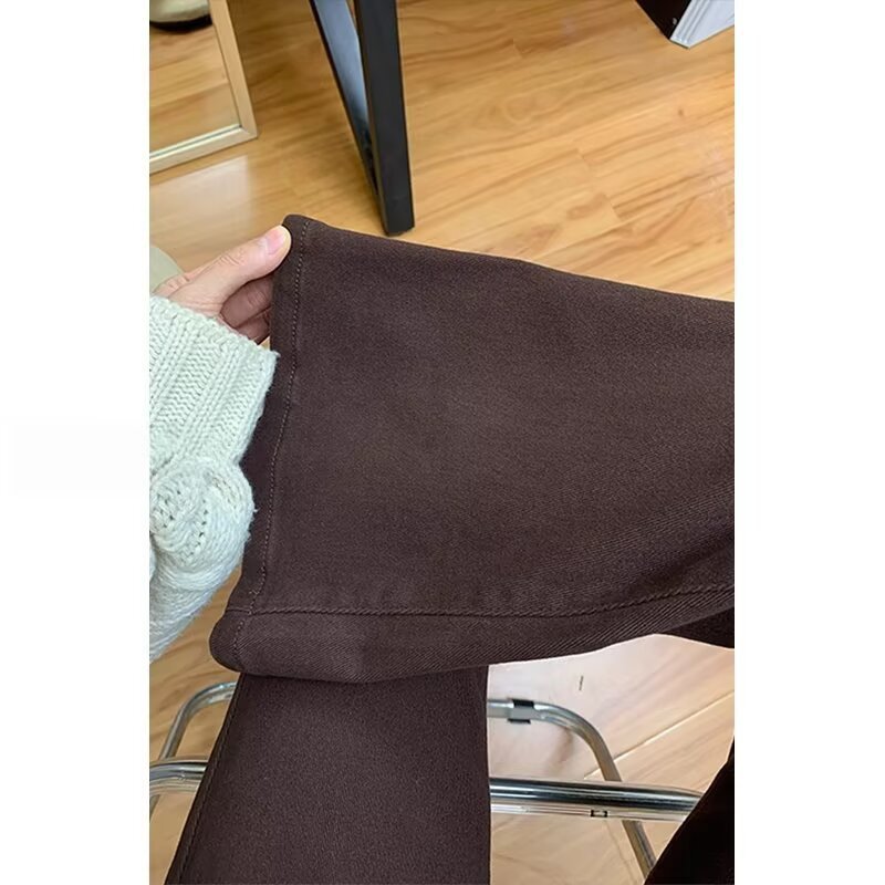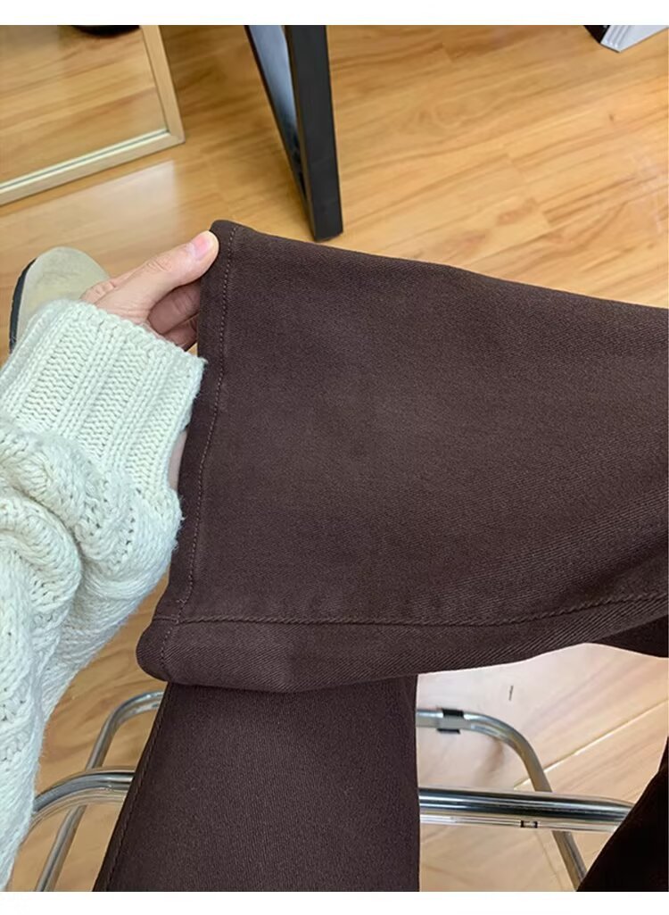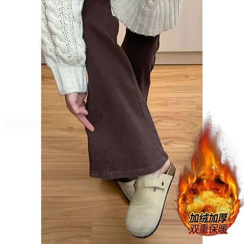 여성용 가을 겨울 신상 하이웨이스트 일자핏 슬림핏 플러스 사이즈 빅사이즈 기모 마이크로 플레어 청바지