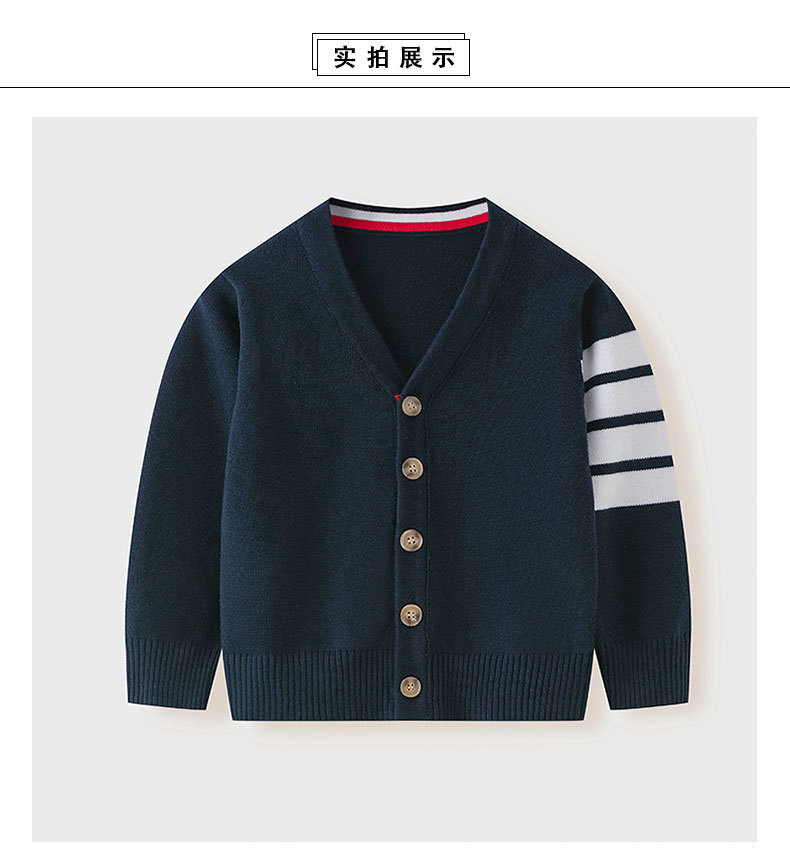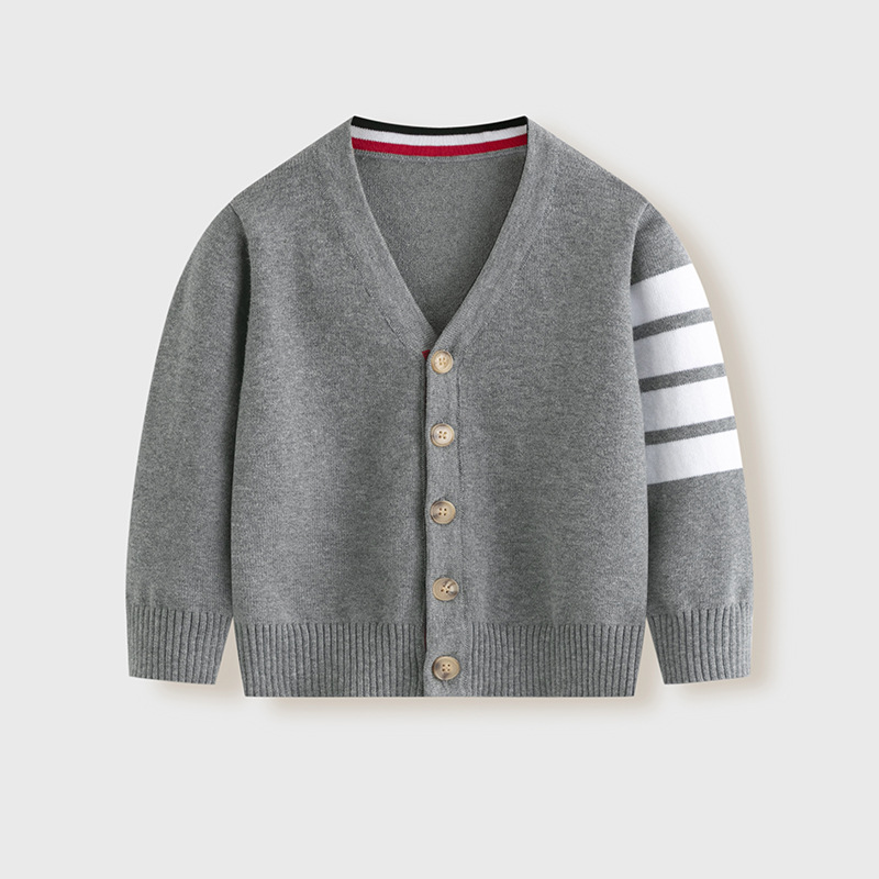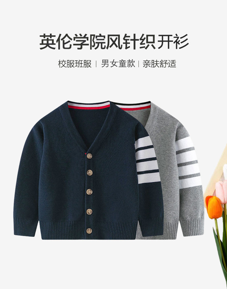 소년과 소녀를위한 공장 직접 판매 영국 대학 스타일 아동용 스웨터 재킷 봄, 가을 얇은 순수 코튼 니트 가디건