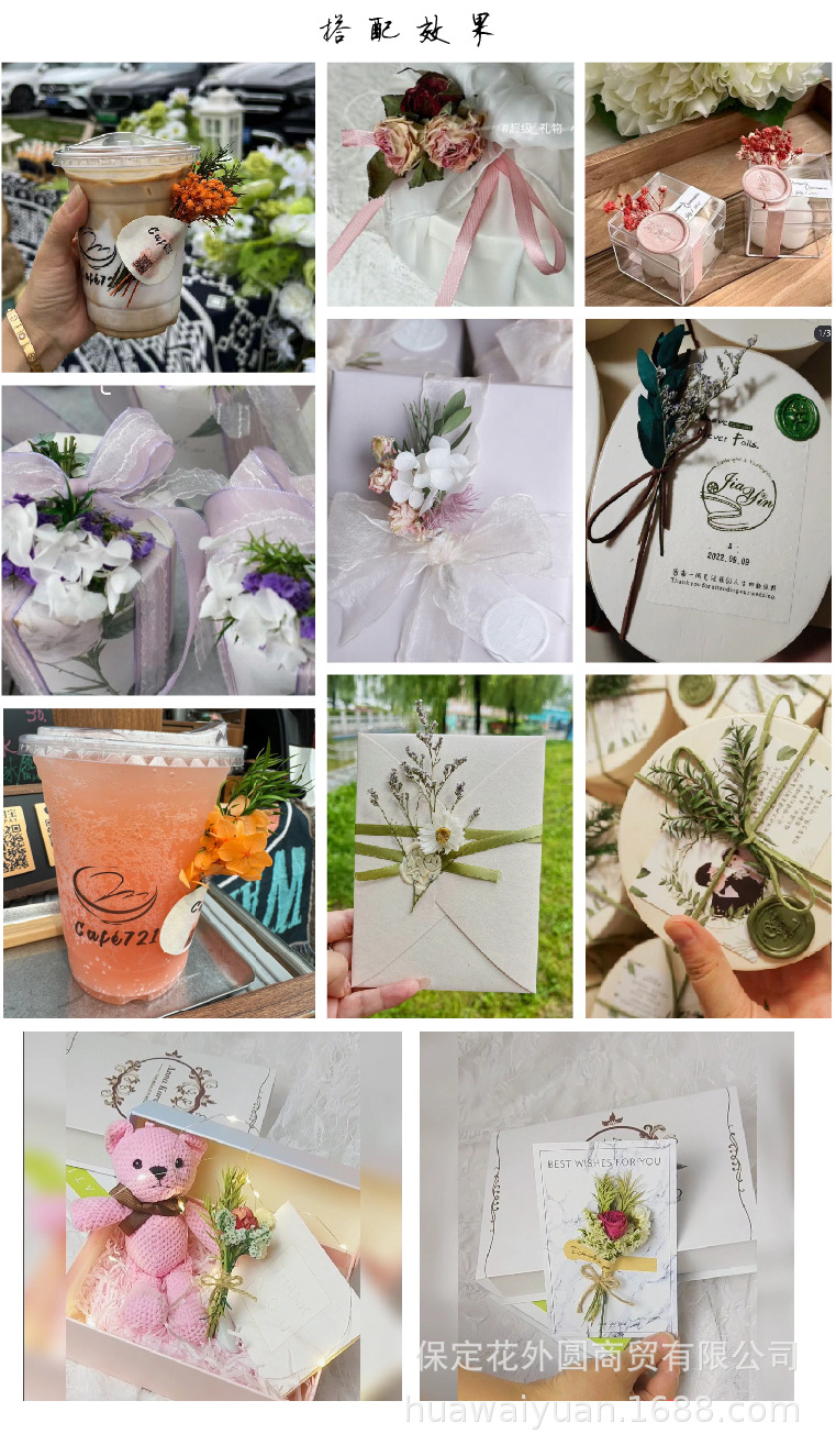 국경 간 미니 말린 꽃 꽃다발 웨딩 설탕 상자 선물 상자 선물 장식 초대 카드 우유 차 컵 DIY 소재스토어 가기