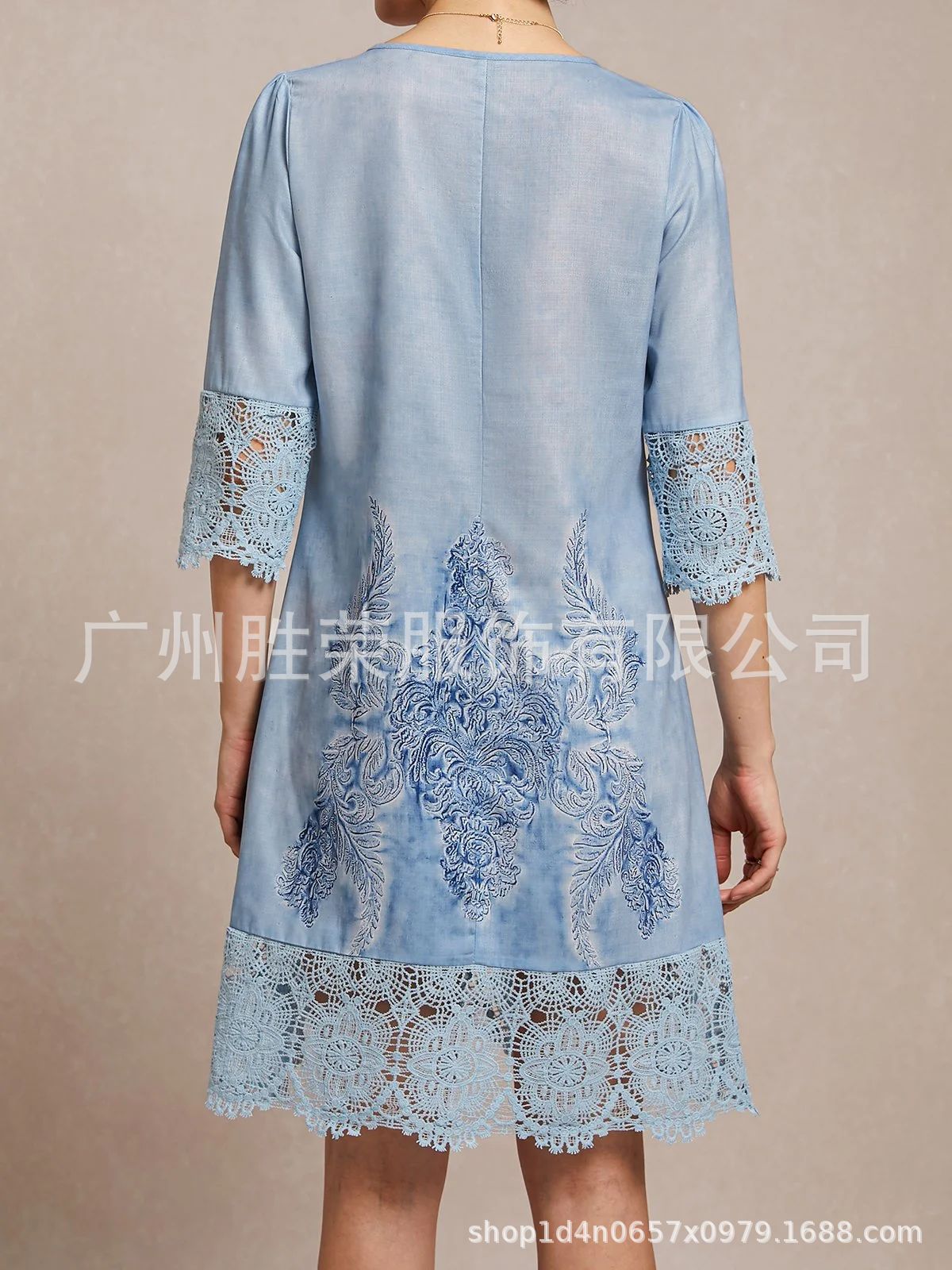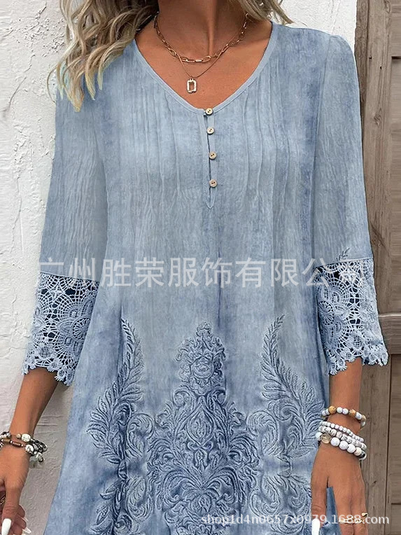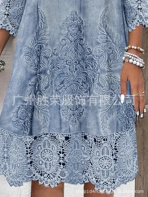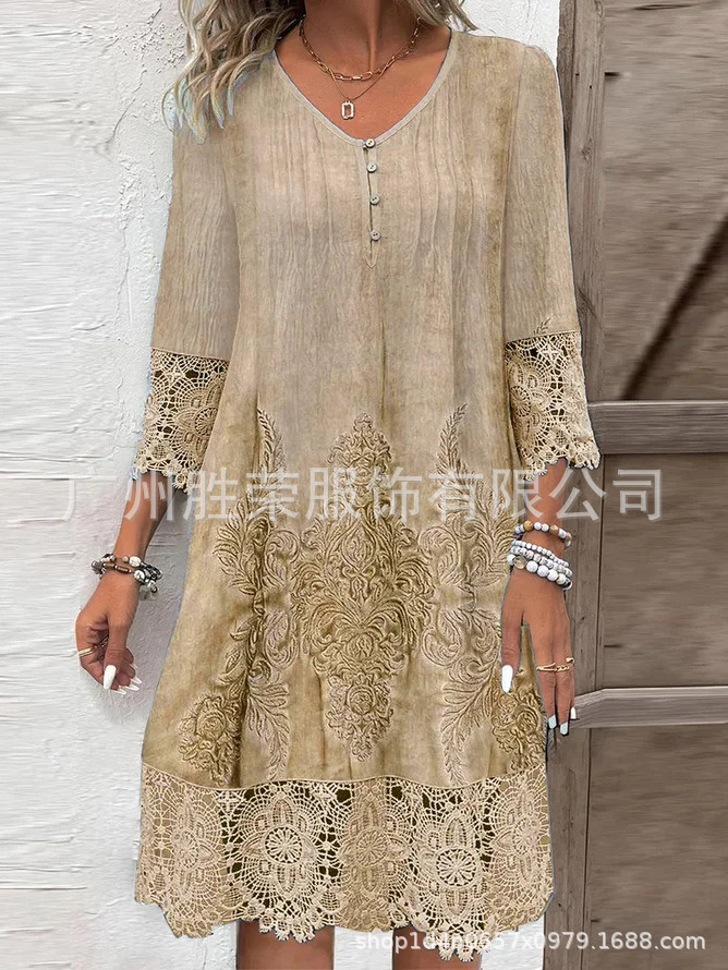 2024 새로운 지점 국경 대외 무역 유럽과 미국 여성 독립 역 봄과 여름 폭발 단색 레이스 원피스스토어 가기