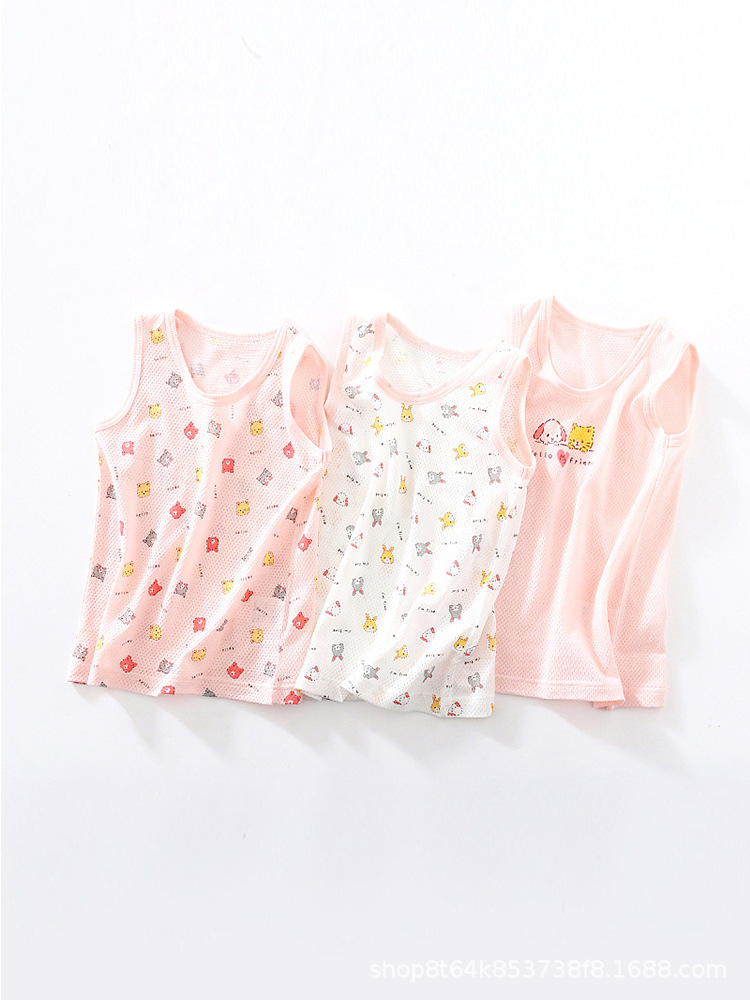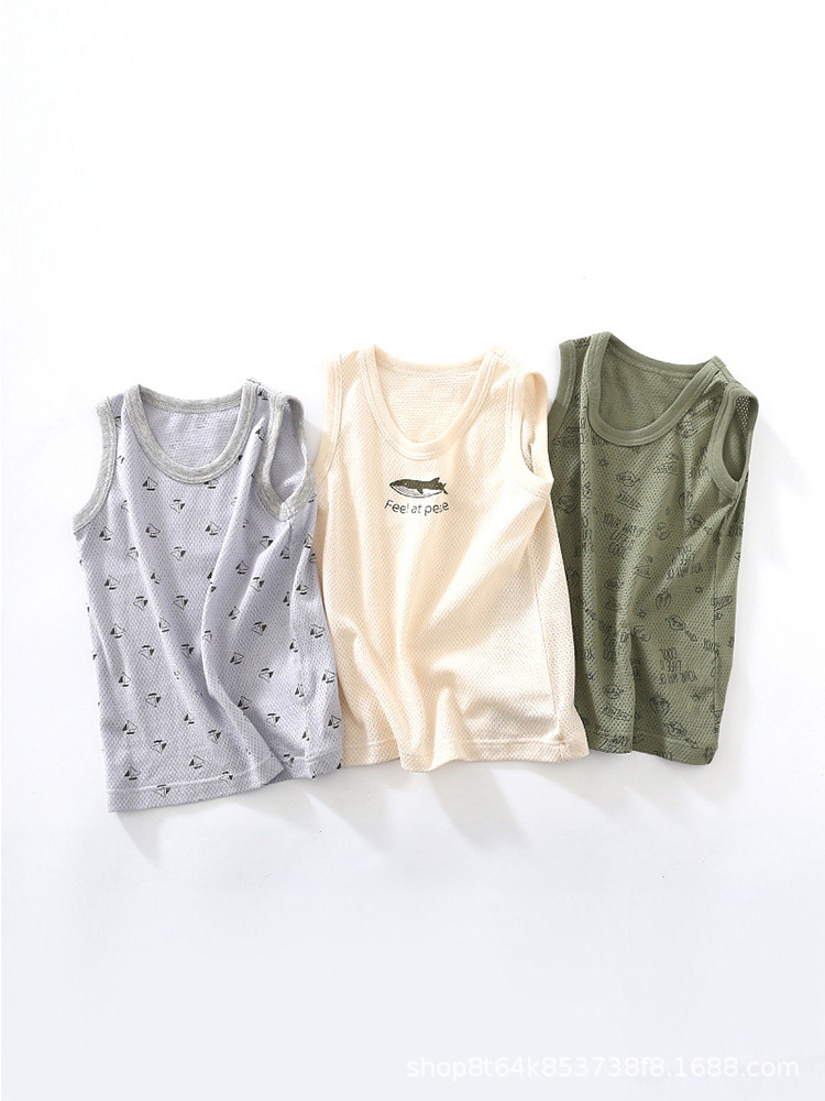 여름 어린이 메쉬 조끼 3 종 소년 소녀를위한 순수한면 민소매 조끼 세트 초박형 멋진 아기 구멍 옷