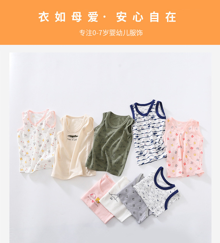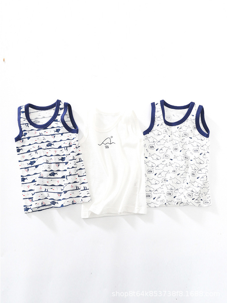 여름 어린이 메쉬 조끼 3 종 소년 소녀를위한 순수한면 민소매 조끼 세트 초박형 멋진 아기 구멍 옷스토어 가기
