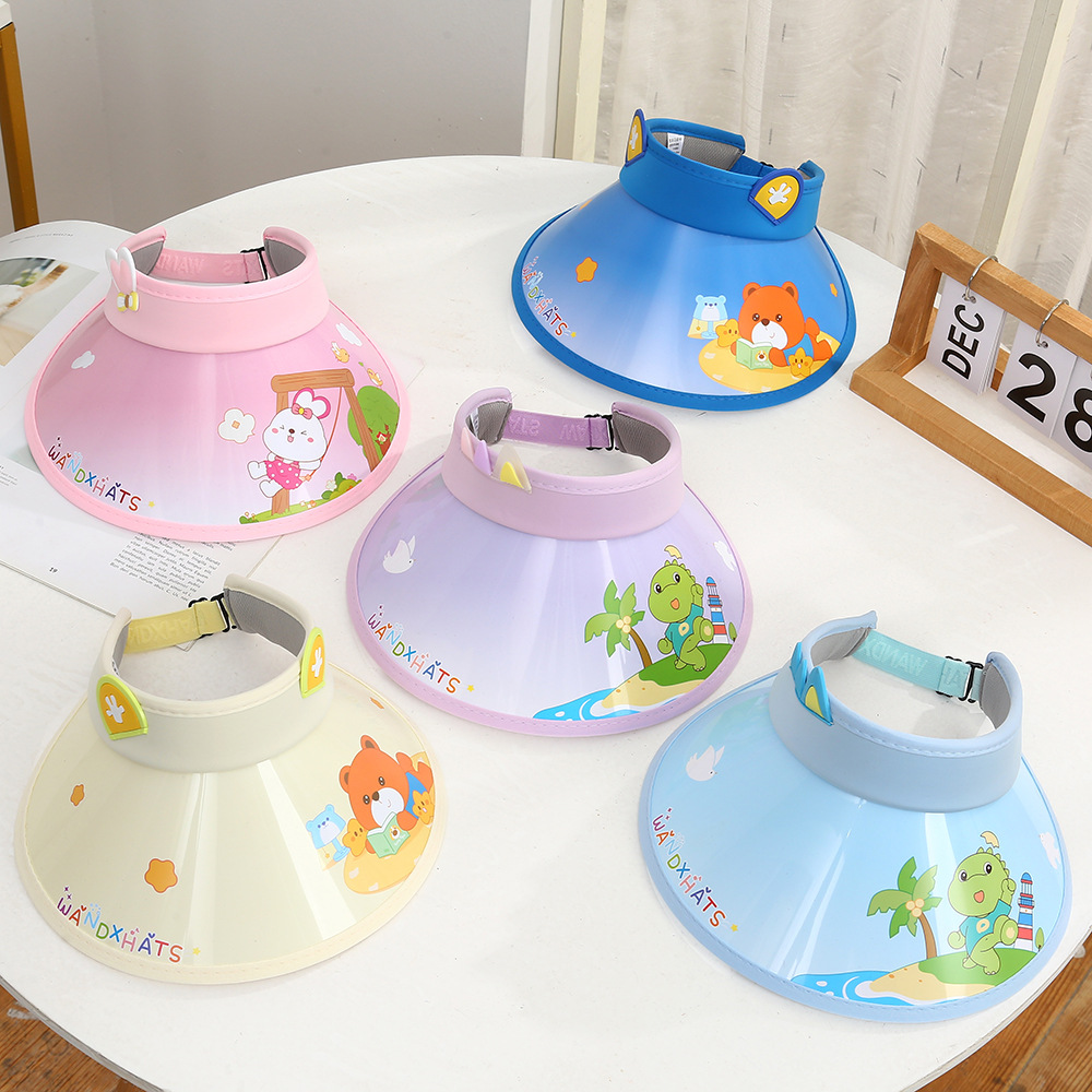 만화 어린이 빈 탑 차양 모자 소년과 소녀 야외 해변 모자 대형 브림 여름 여행 여행 선 스크린 모자스토어 가기