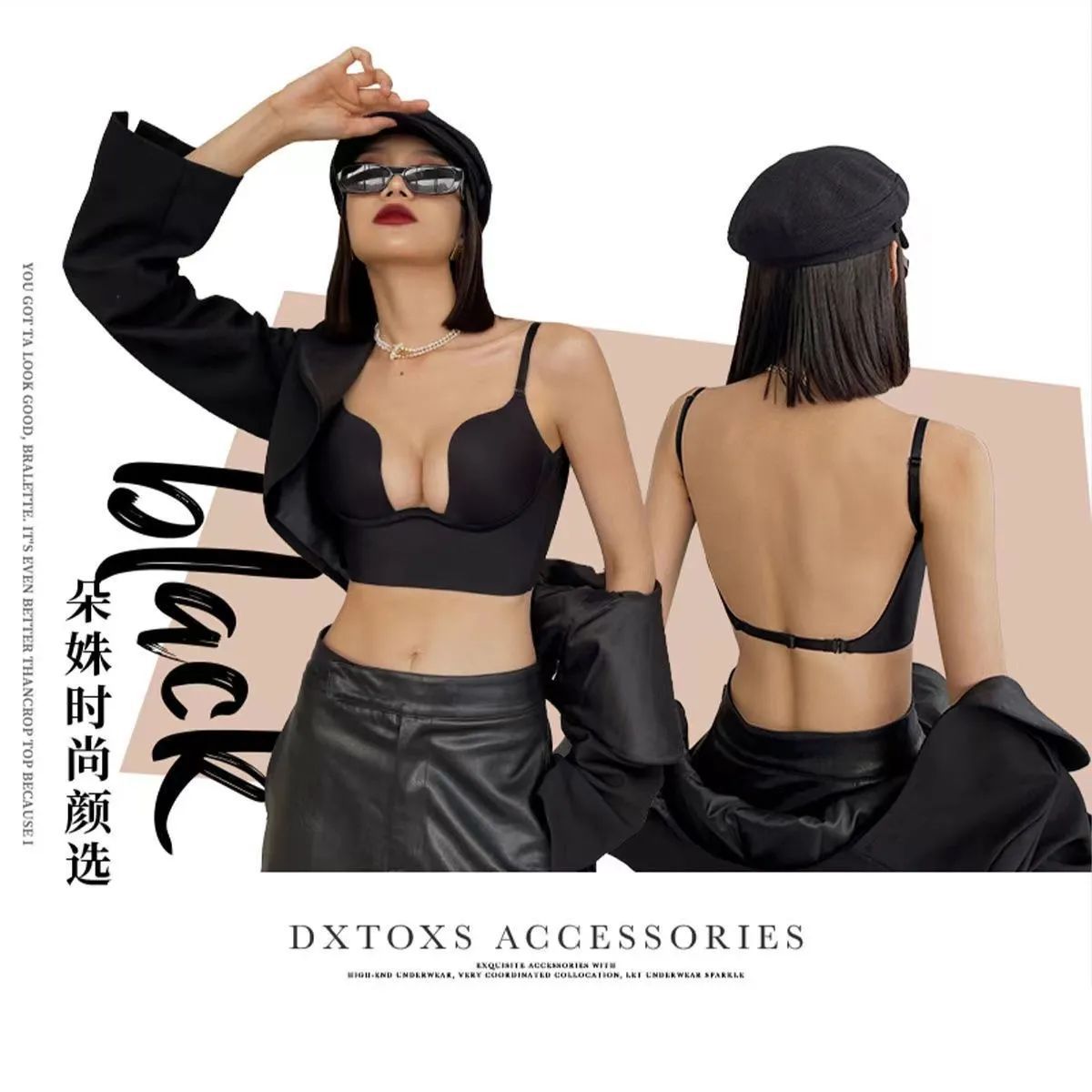 대형 백리스 속옷 보이지 않는 아름다운 등 U 자형 작은 가슴 푸쉬 업 여성용 딥 V 섹시한 두꺼운 브래지어 완전 노출 된 리키 백 이브닝 원피스스토어 가기