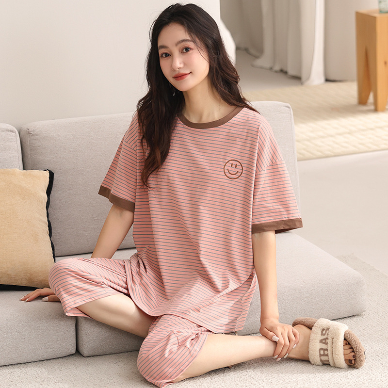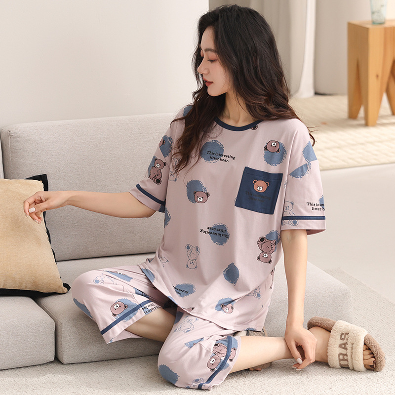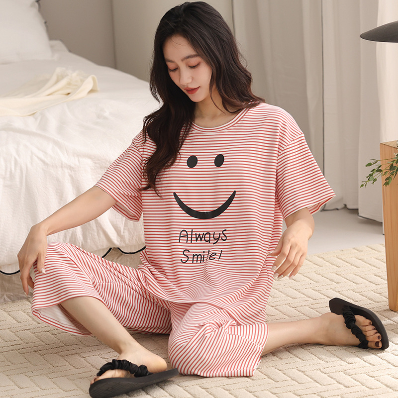 슈퍼 사이즈 잠옷 여성 여름 200kg 면 짧은 소매 크롭 바지 크루 넥 지방 mm 홈 의류 세트 240kg 6XL스토어 가기