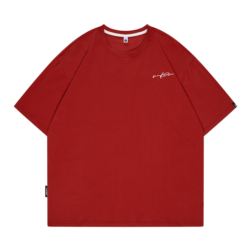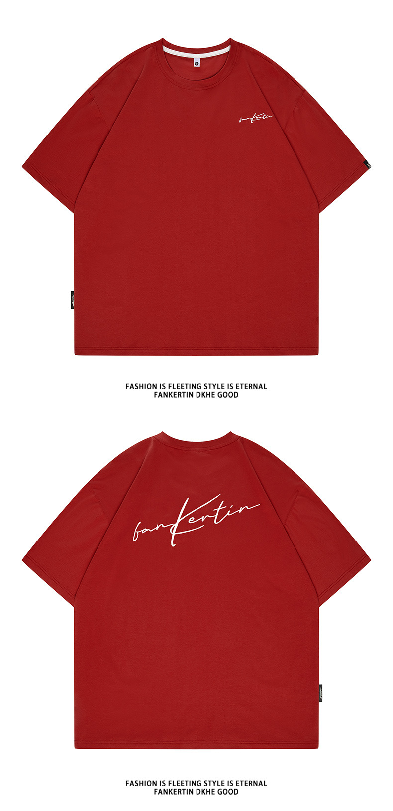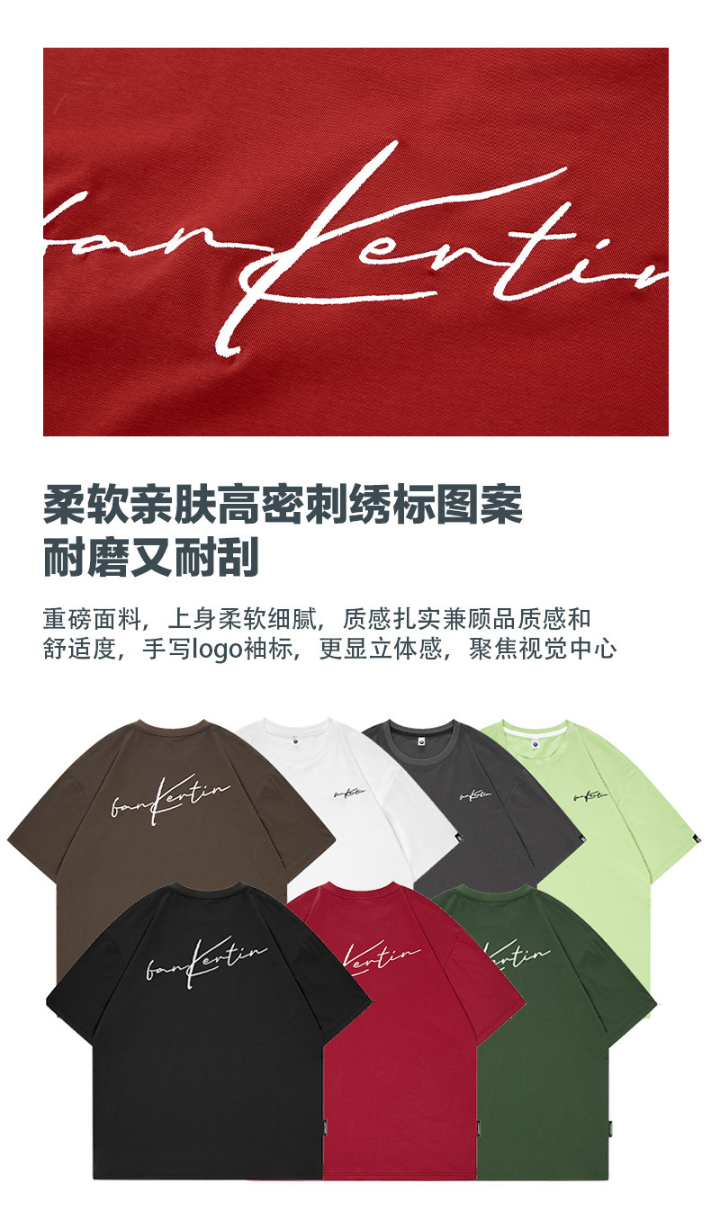 미국 200G 무거운 드래곤 년 자수 티셔츠 남자 짧은 소매 여름 2024 새로운 라운드 넥 백업 셔츠 빨간 반소매스토어 가기
