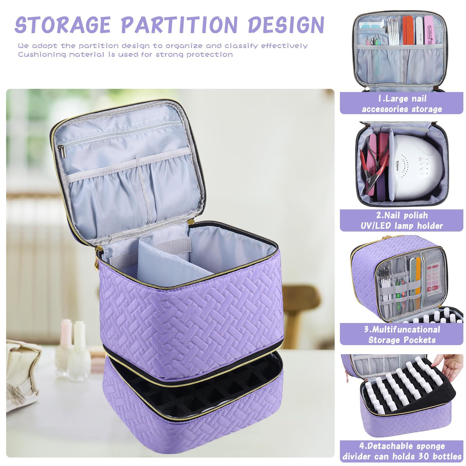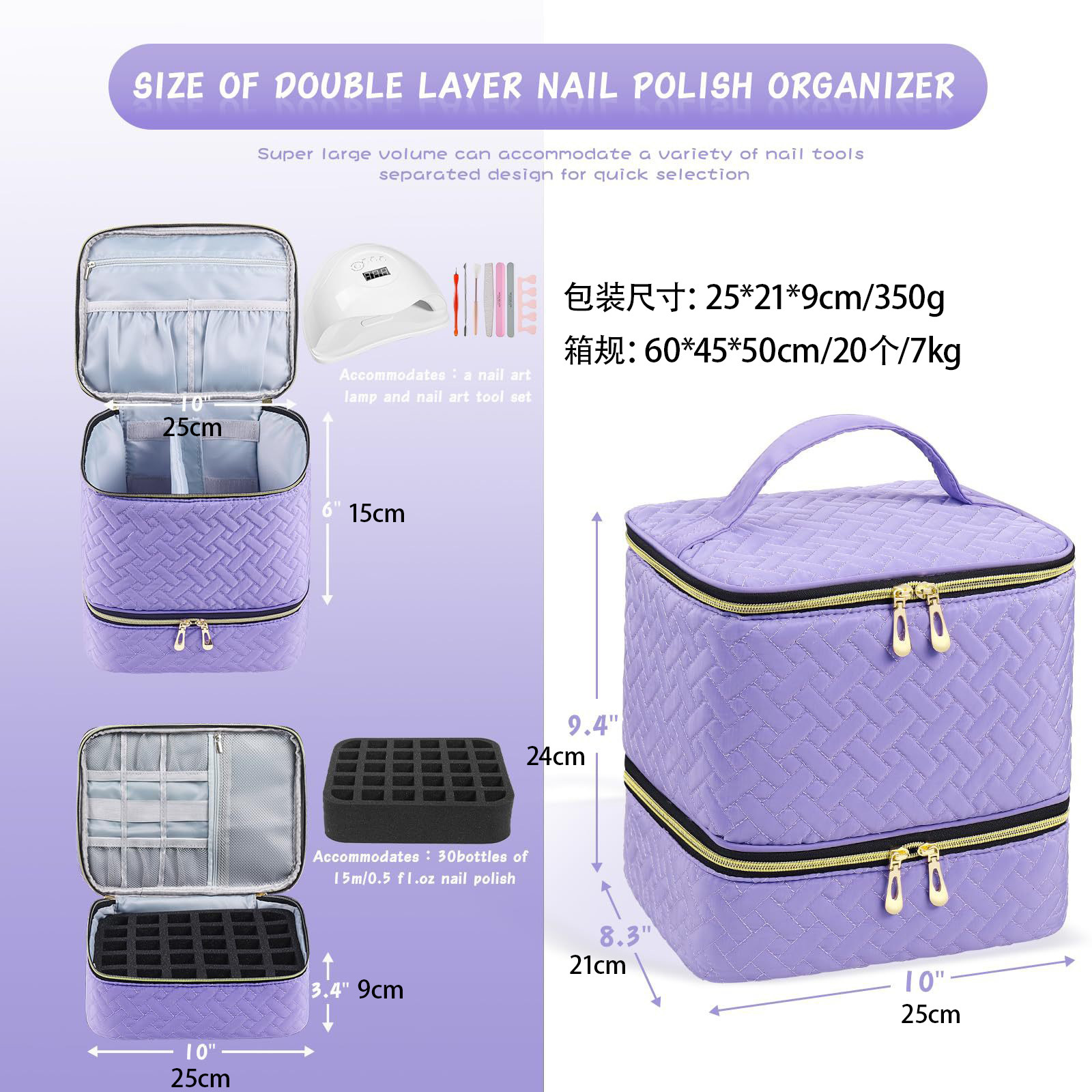 대용량 이중 퀼트 매니큐어 가방은 매니큐어 및 매니큐어 램프 여행 휴대용 30 병을 저장할 수 있습니다.스토어 가기