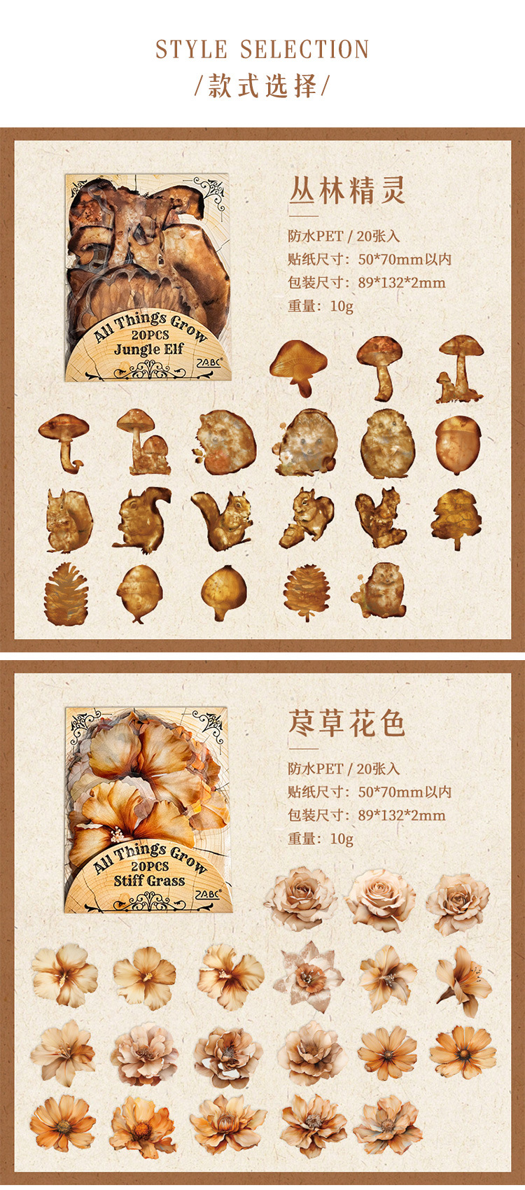 모든 것 성장 시리즈 투명 방수 애완 동물 손 계정 스티커 가방 diy 식물 장식 재료 동물 문구 스티커스토어 가기