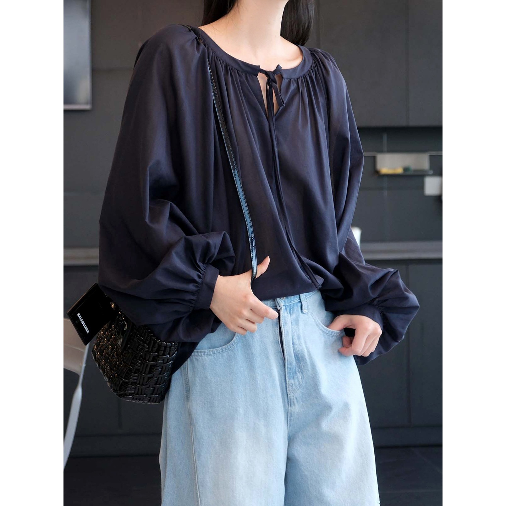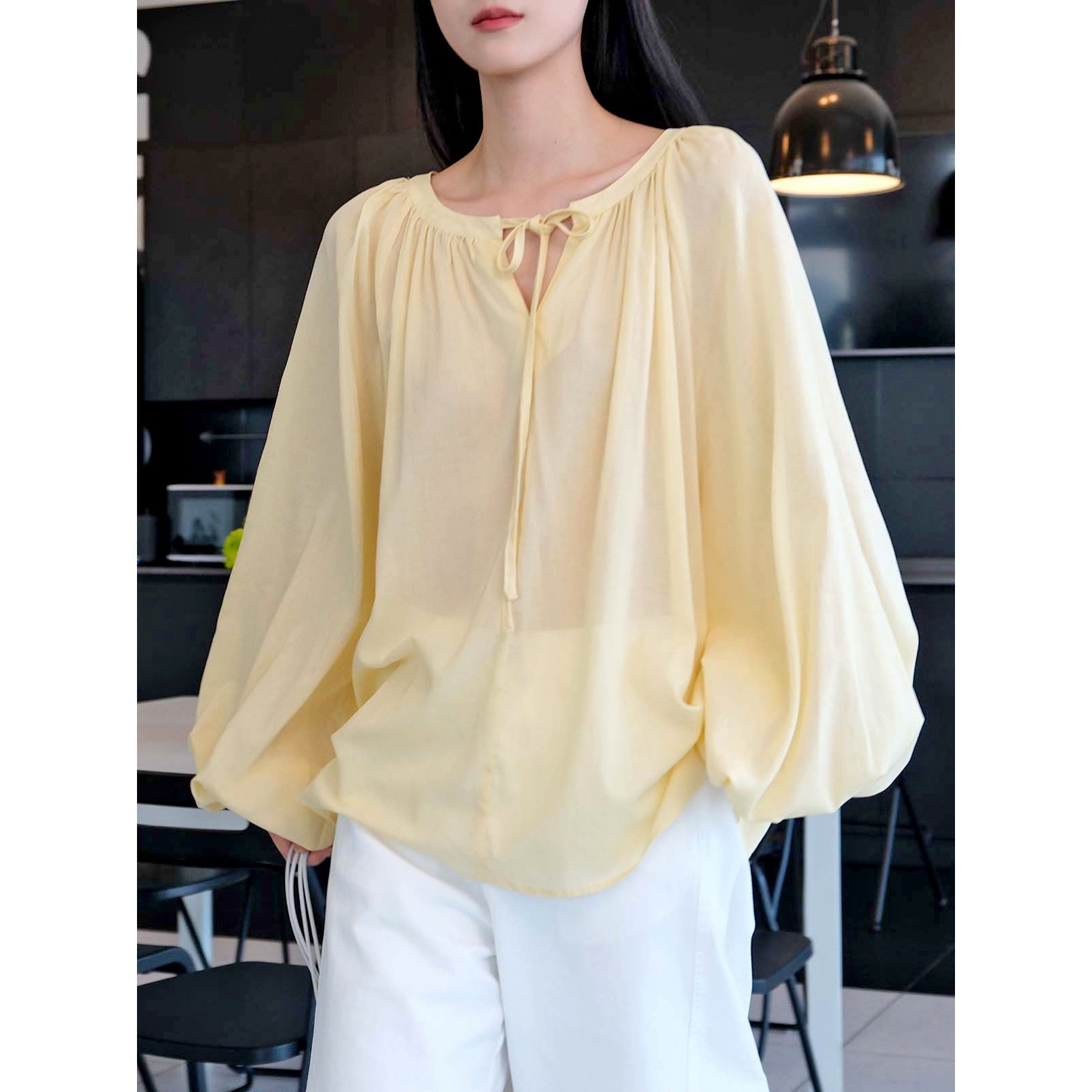 루 푸 여름 새로운 프랑스 스타일 로맨틱 우아한 랜턴 소매 셔츠 멋진 피부 투명 느슨한 편안한 인형 탑