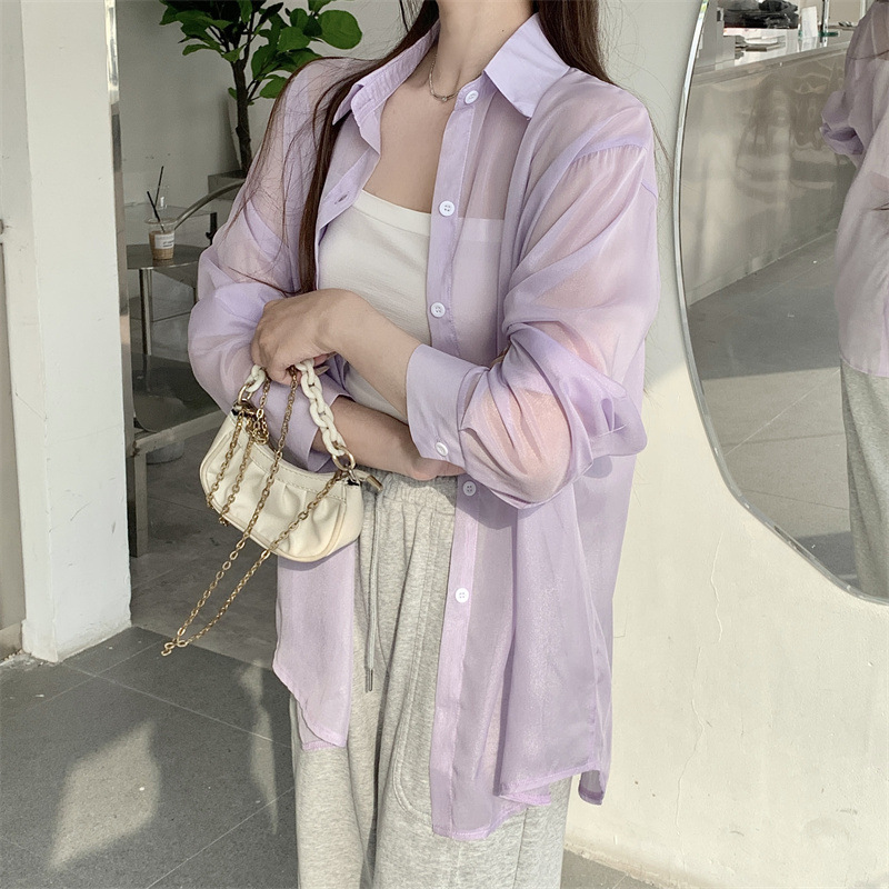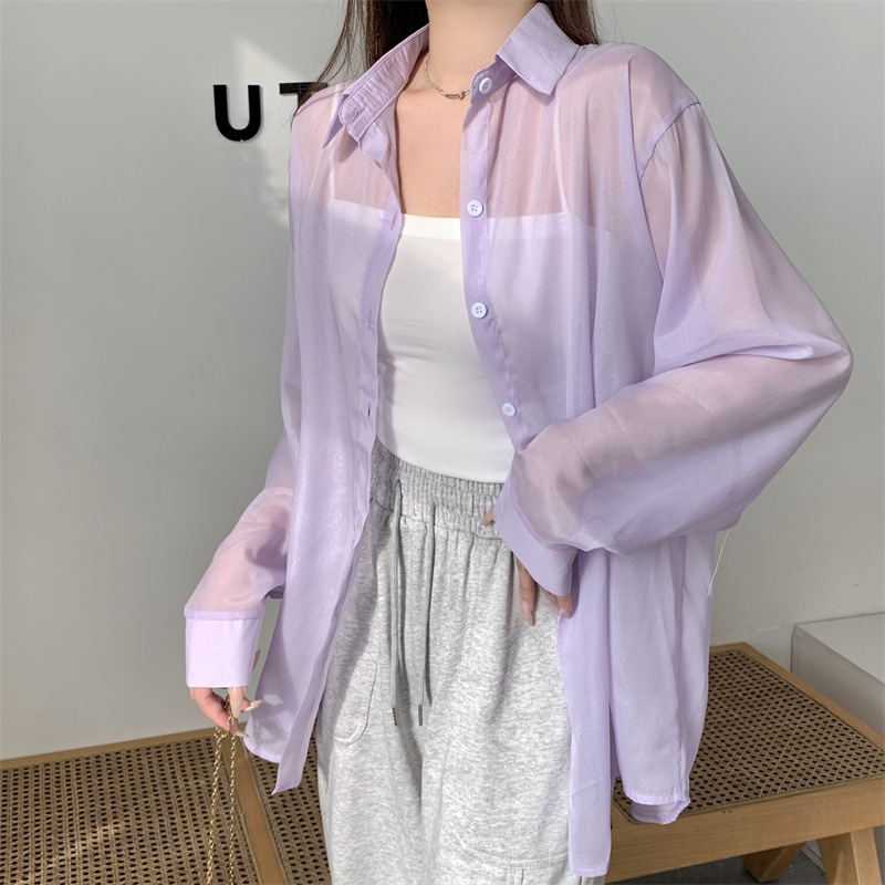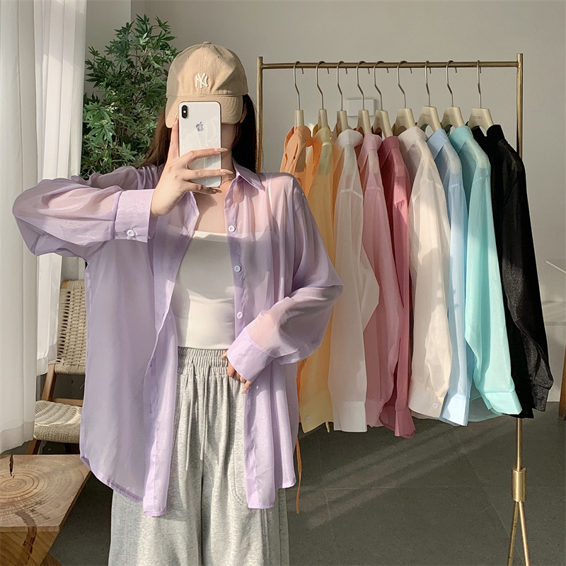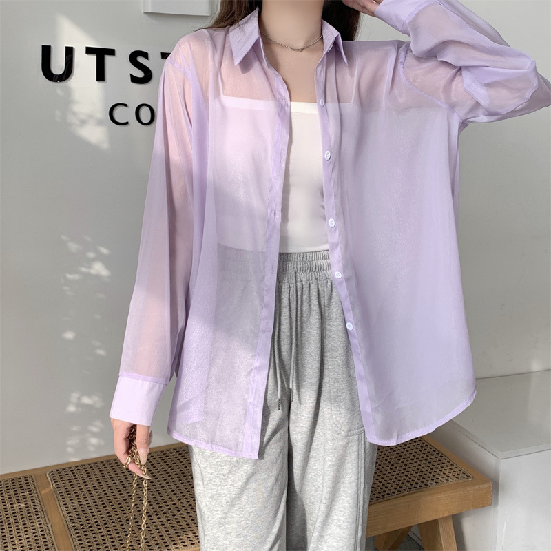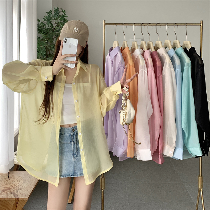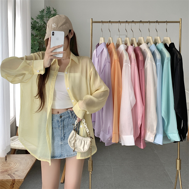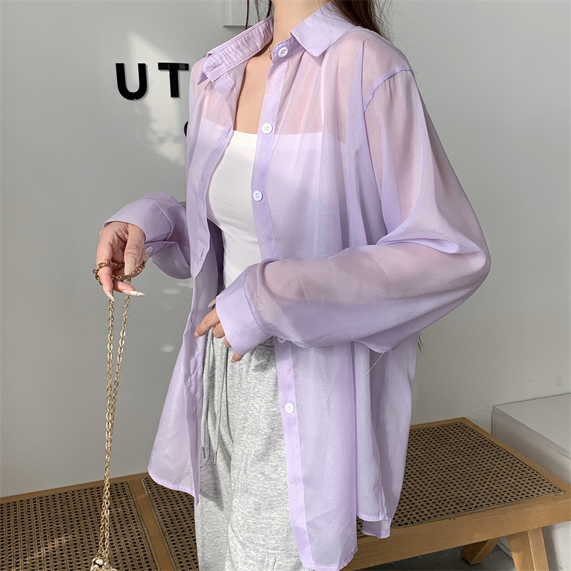 다시 분할 진주 빛 눈 방지 셔츠 외부 마운트 에어컨 셔츠 2024 여름 자외선 방지 통기성 선 스크린 탑스토어 가기