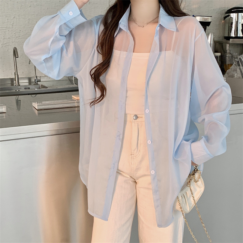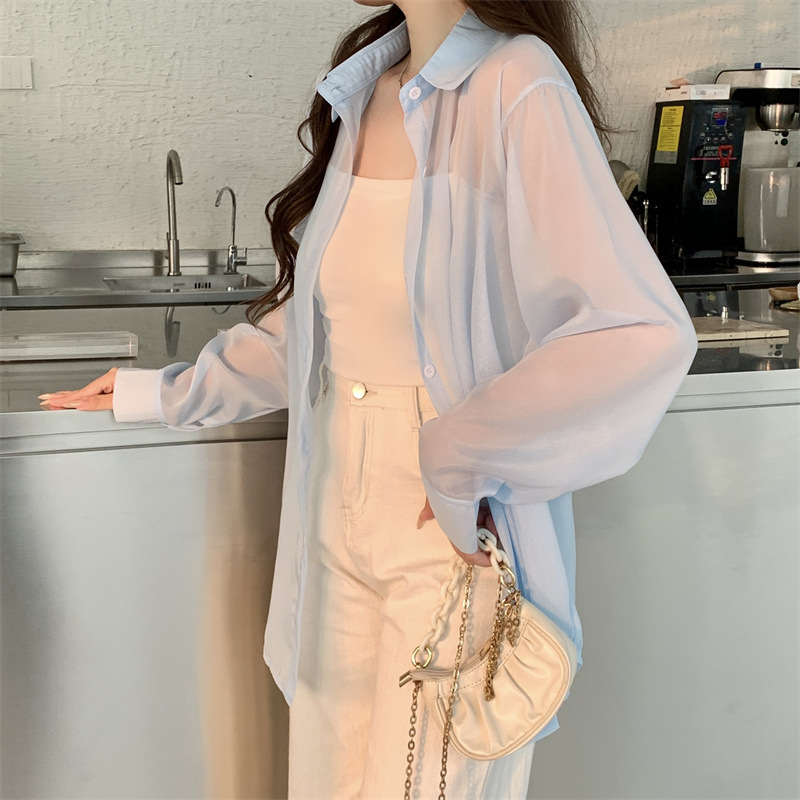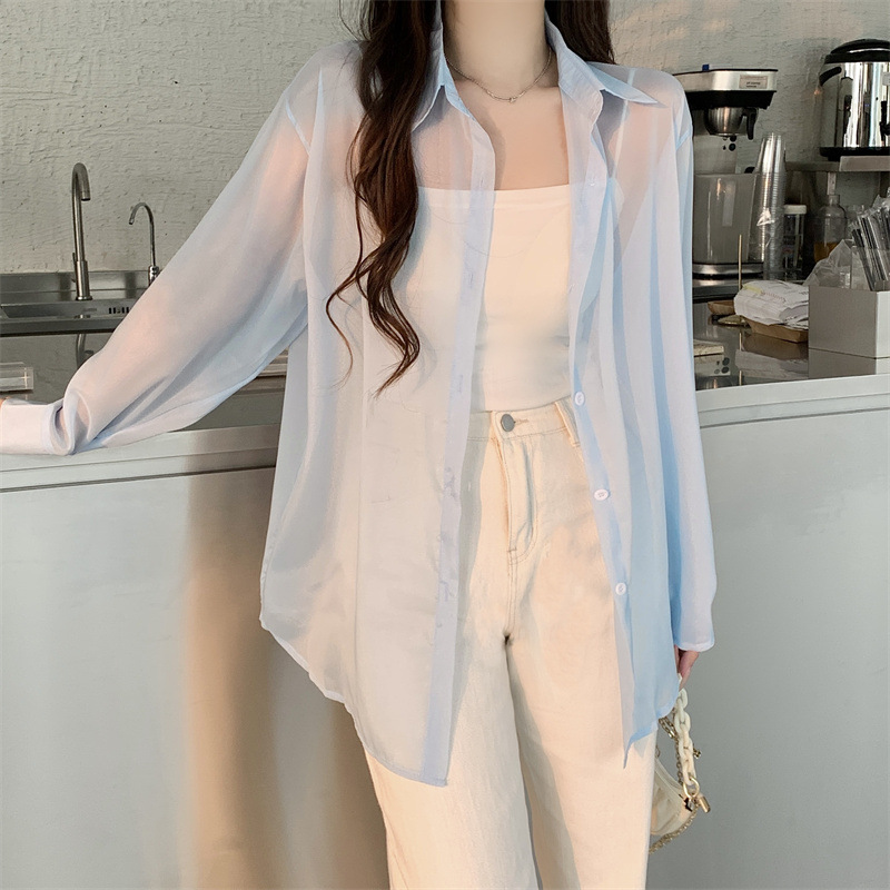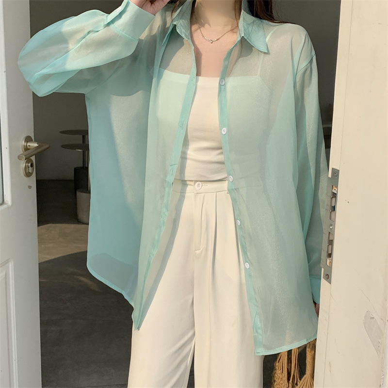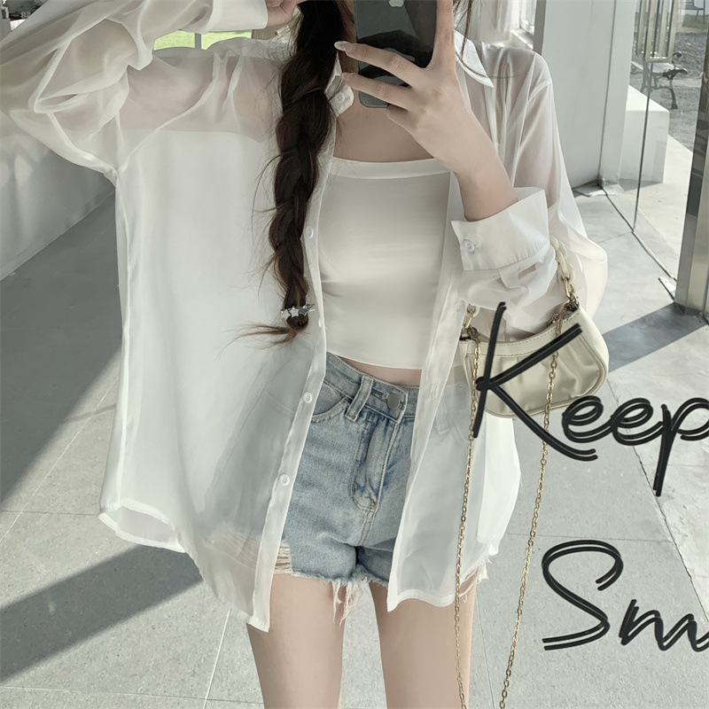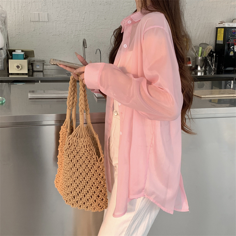 다시 분할 진주 빛 눈 방지 셔츠 외부 마운트 에어컨 셔츠 2024 여름 자외선 방지 통기성 선 스크린 탑스토어 가기