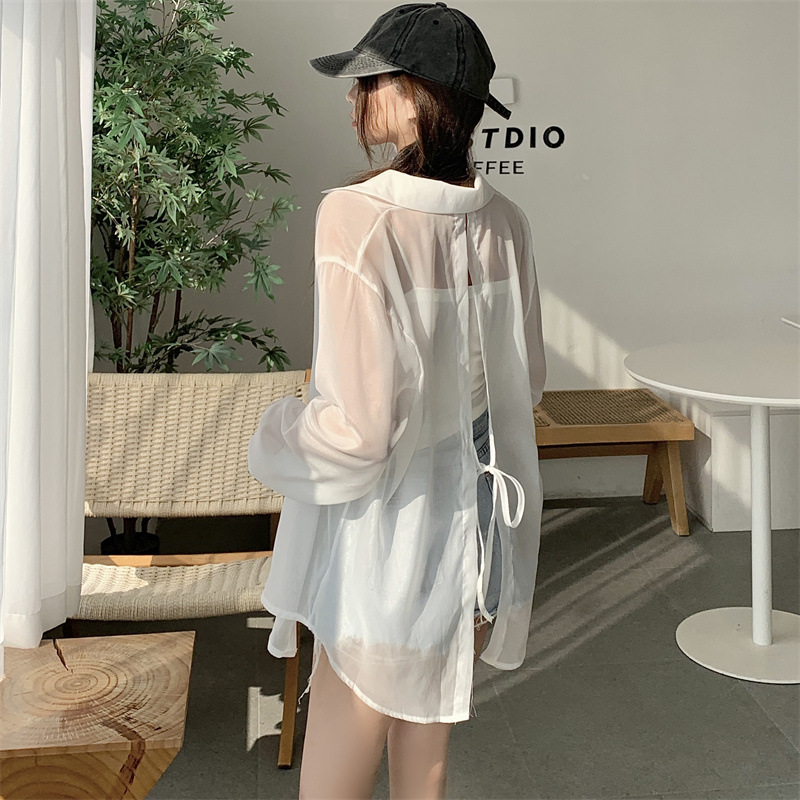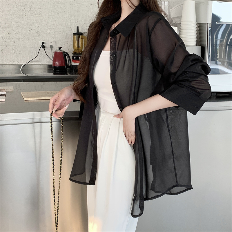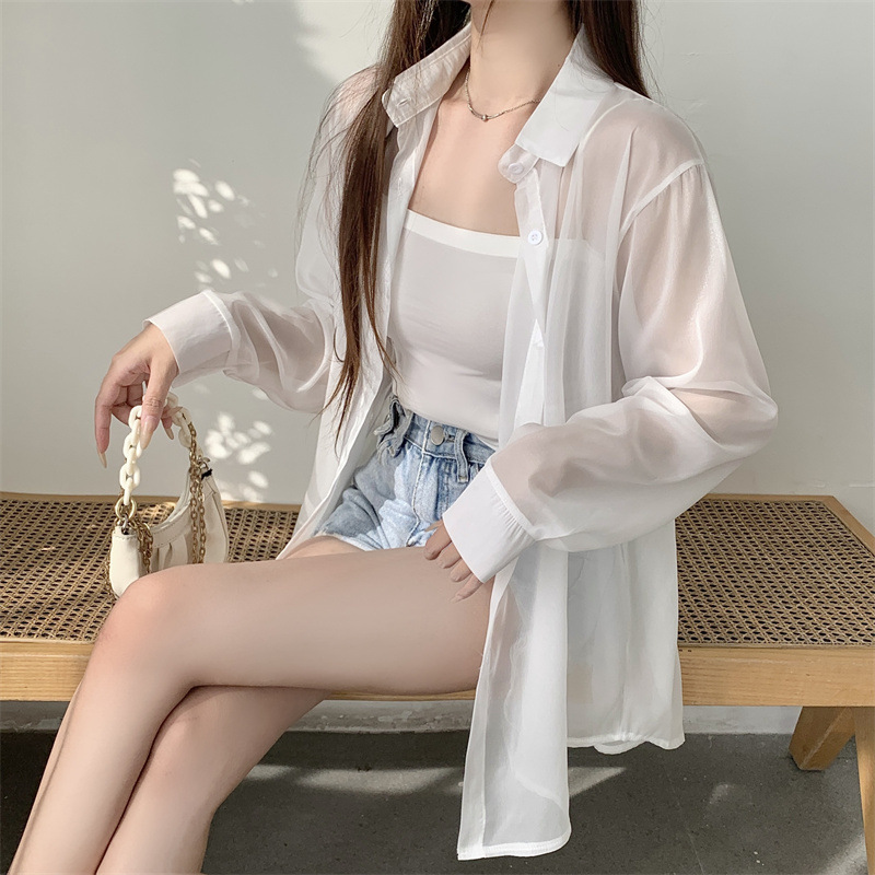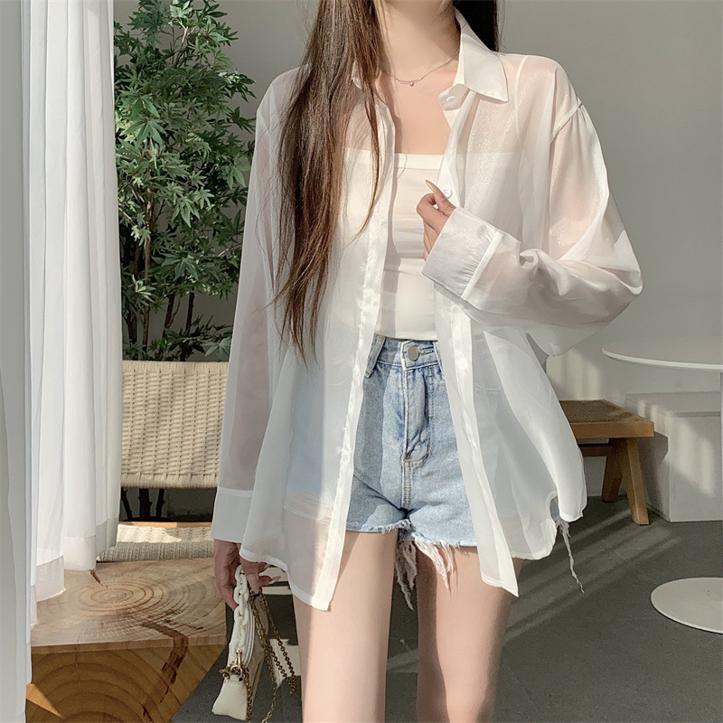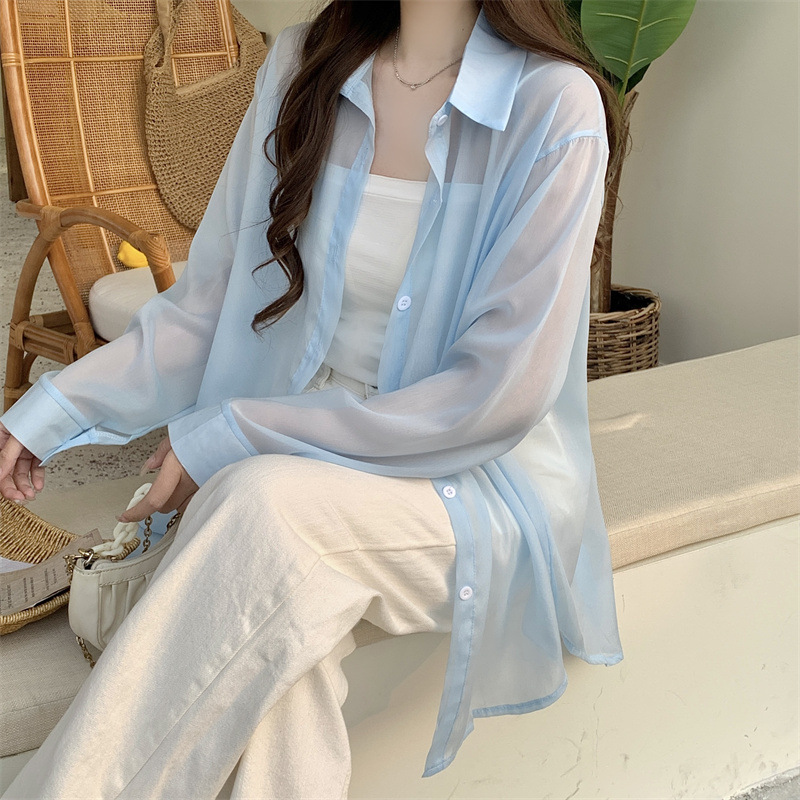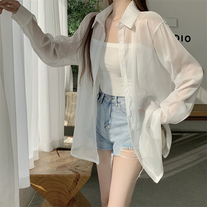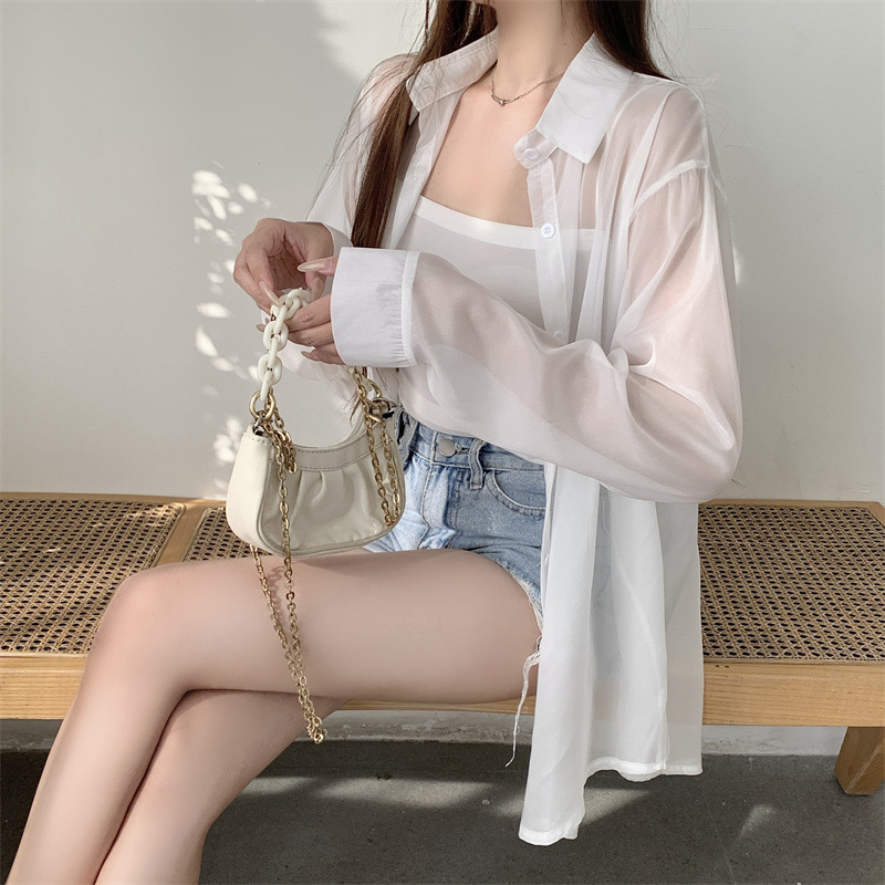 다시 분할 진주 빛 눈 방지 셔츠 외부 마운트 에어컨 셔츠 2024 여름 자외선 방지 통기성 선 스크린 탑스토어 가기