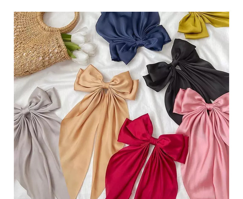 새틴 대형 빈티지 긴 리본 활 머리핀 다색 삼각형 수건 부르고뉴 활 봄 클립 헤어 액세서리