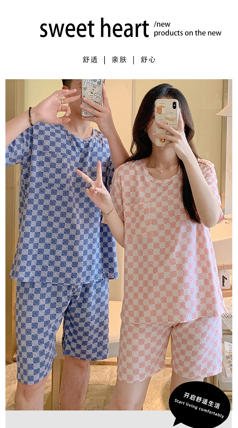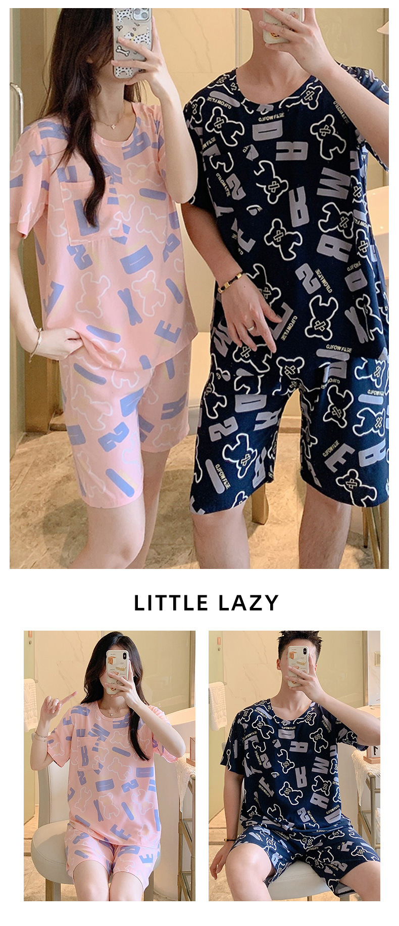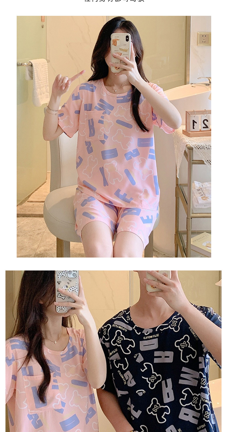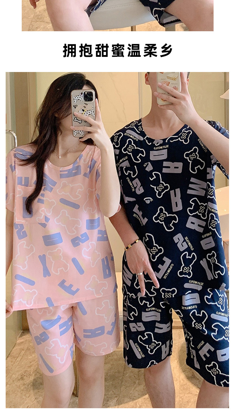 여름 커플 코튼 실크 파자마 여성 반팔 바지 세트 외주 학생 버전 얇은 쿨 느낌 남성 홈 옷스토어 가기