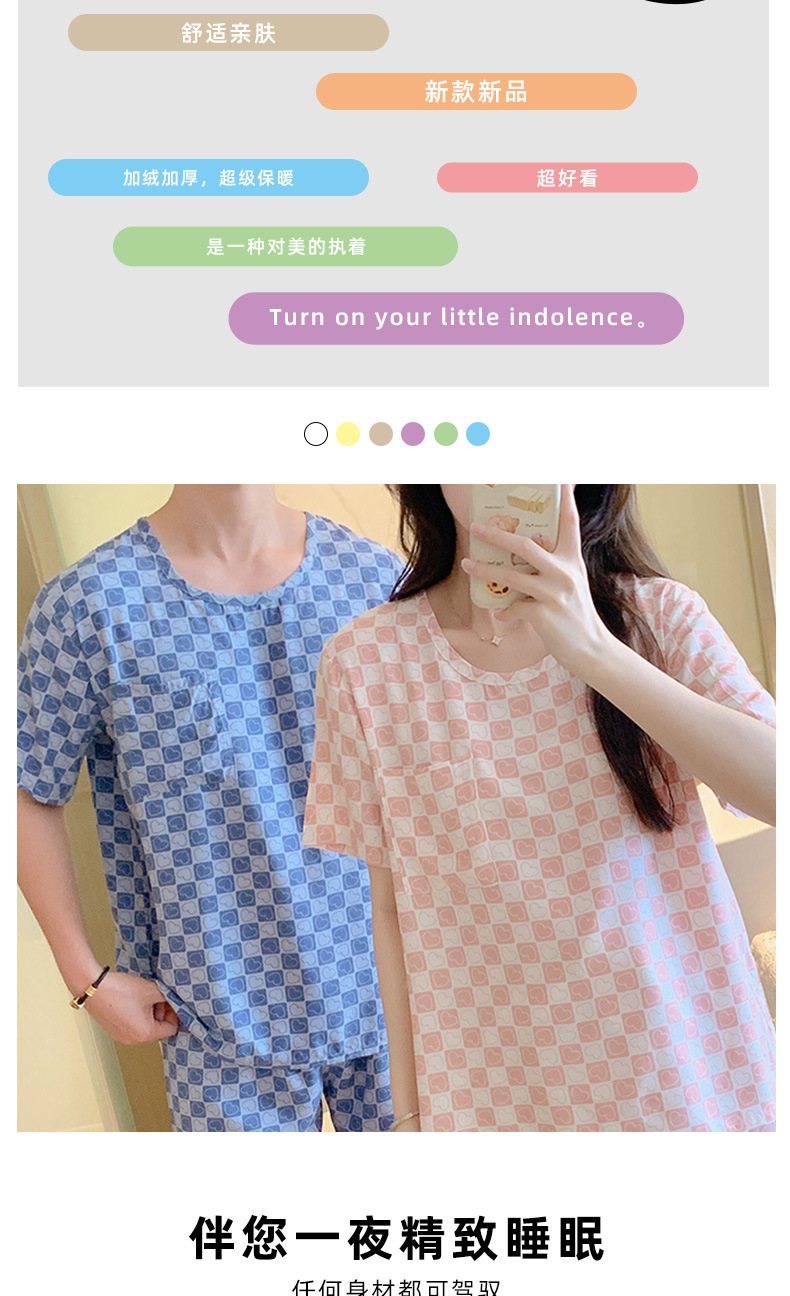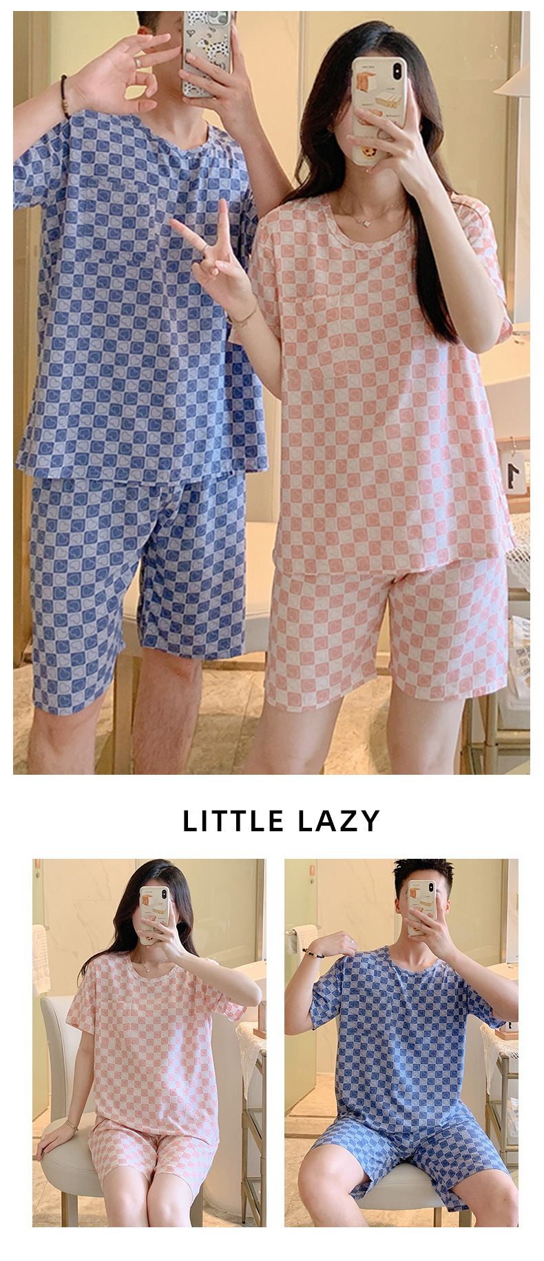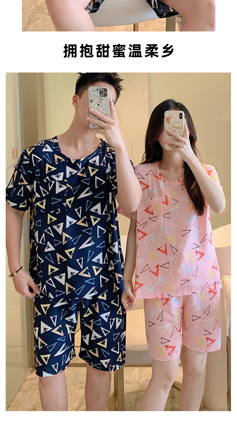 여름 커플 코튼 실크 파자마 여성 반팔 바지 세트 외주 학생 버전 얇은 쿨 느낌 남성 홈 옷스토어 가기