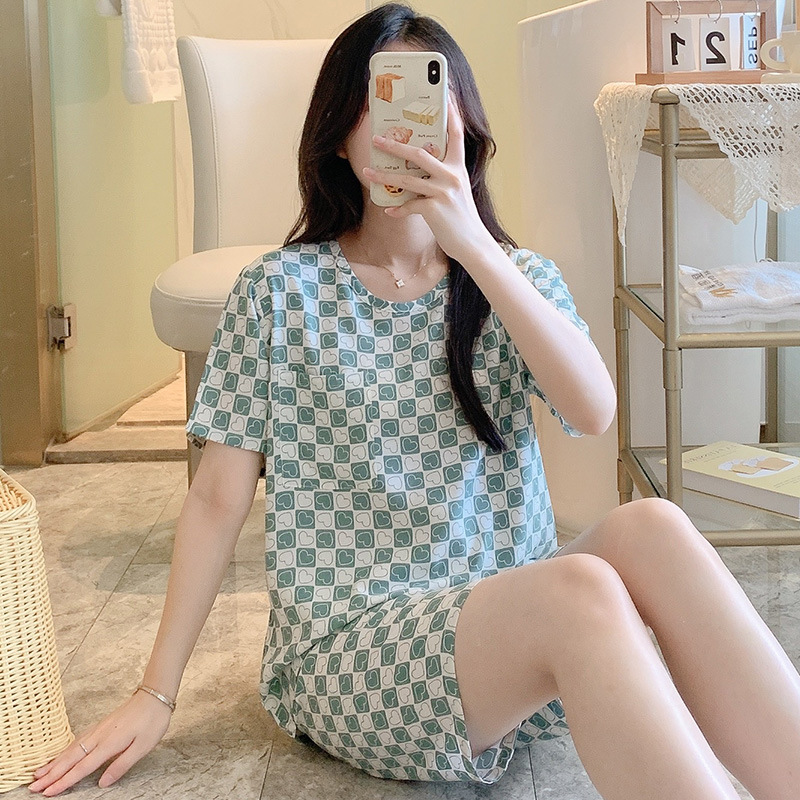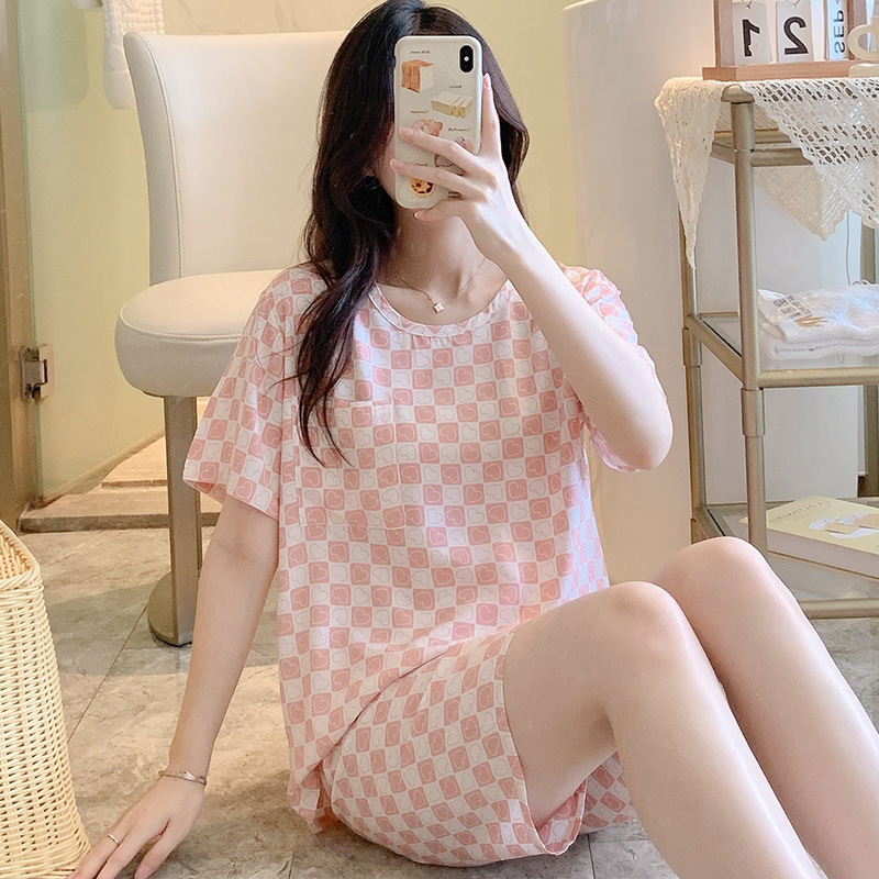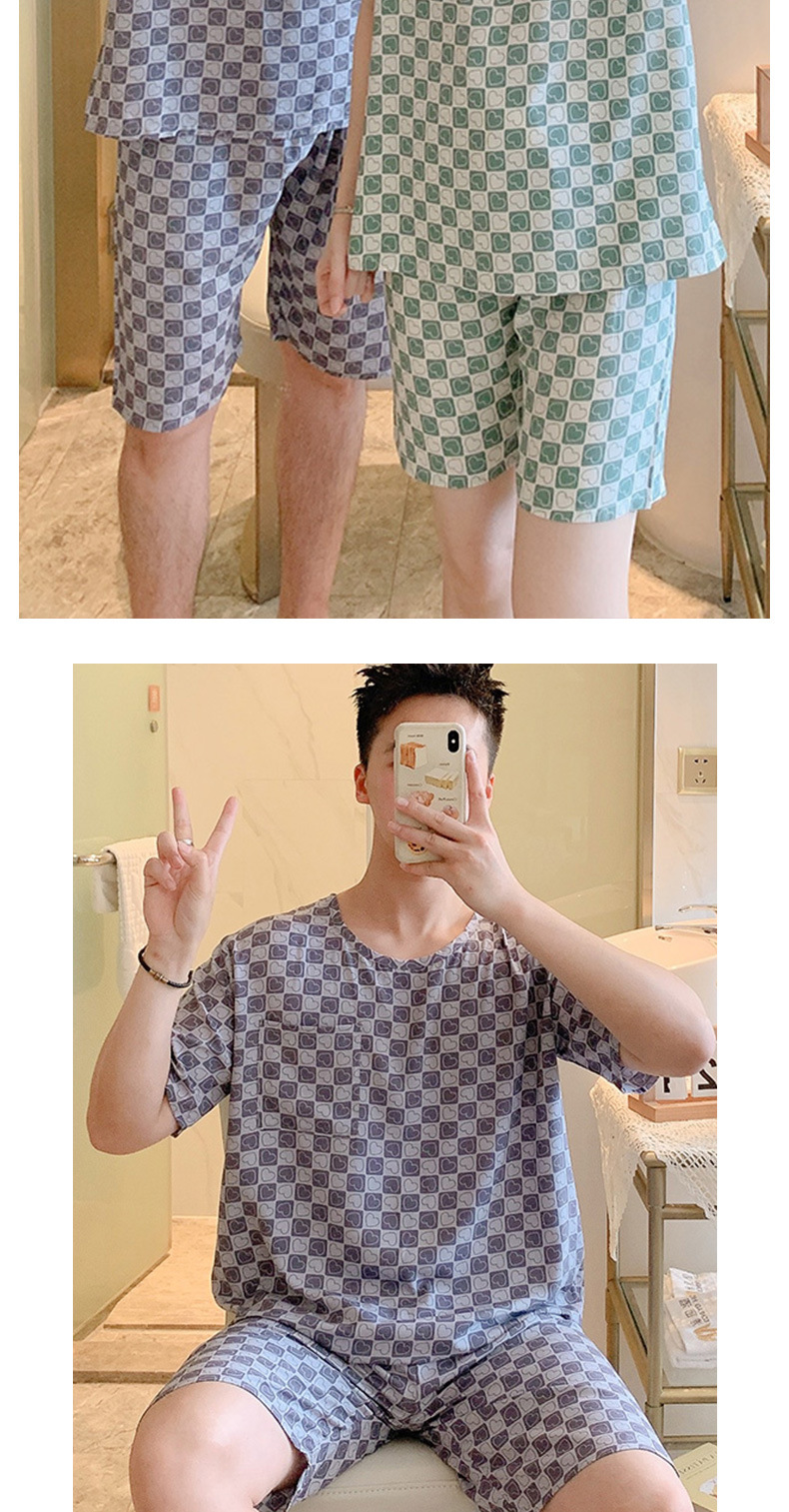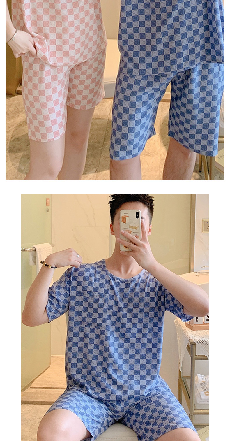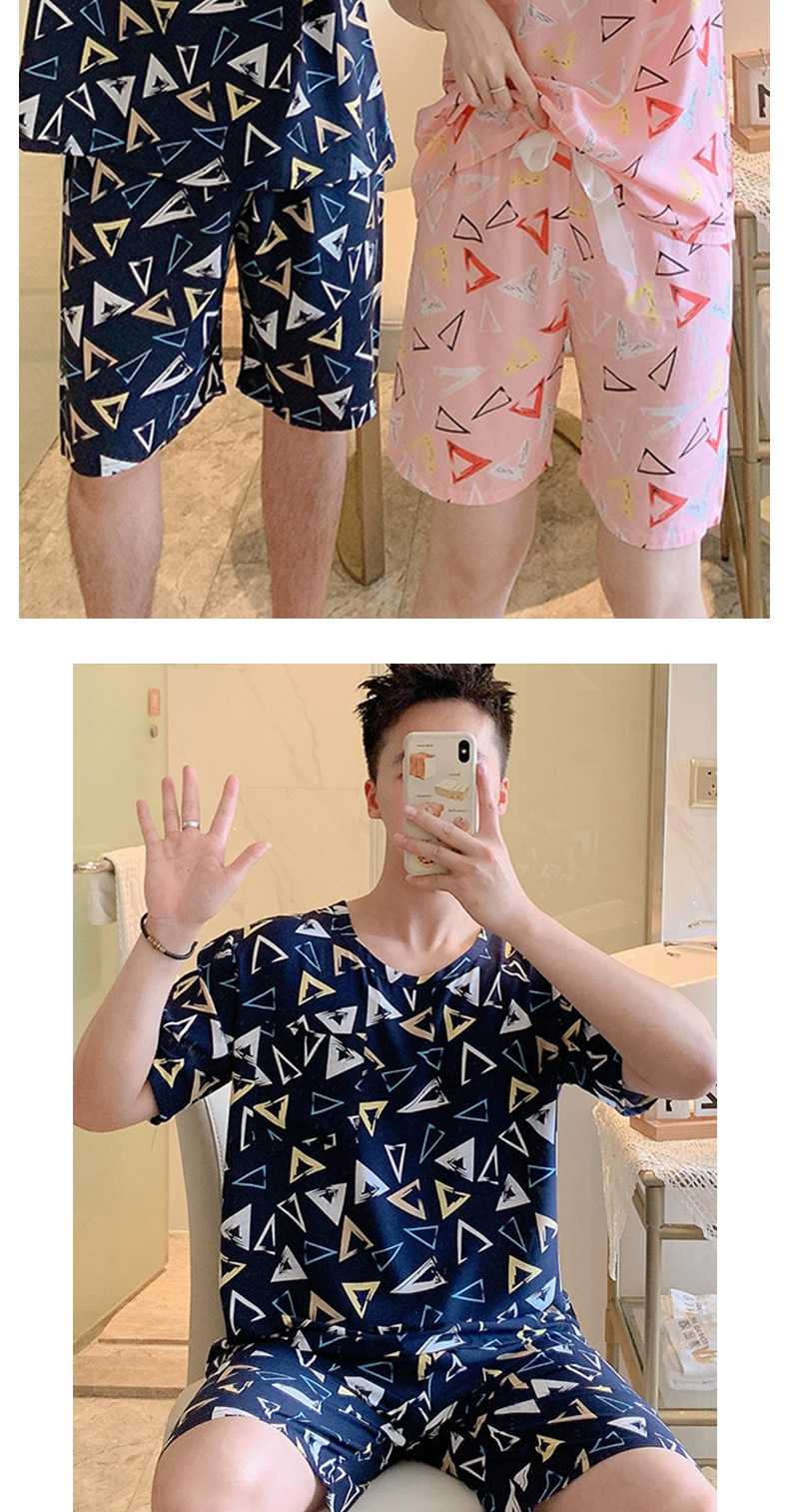 여름 커플 코튼 실크 파자마 여성 반팔 바지 세트 외주 학생 버전 얇은 쿨 느낌 남성 홈 옷스토어 가기