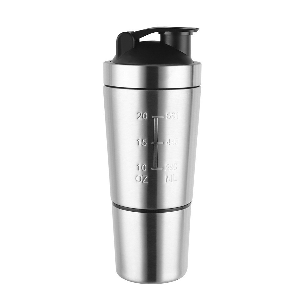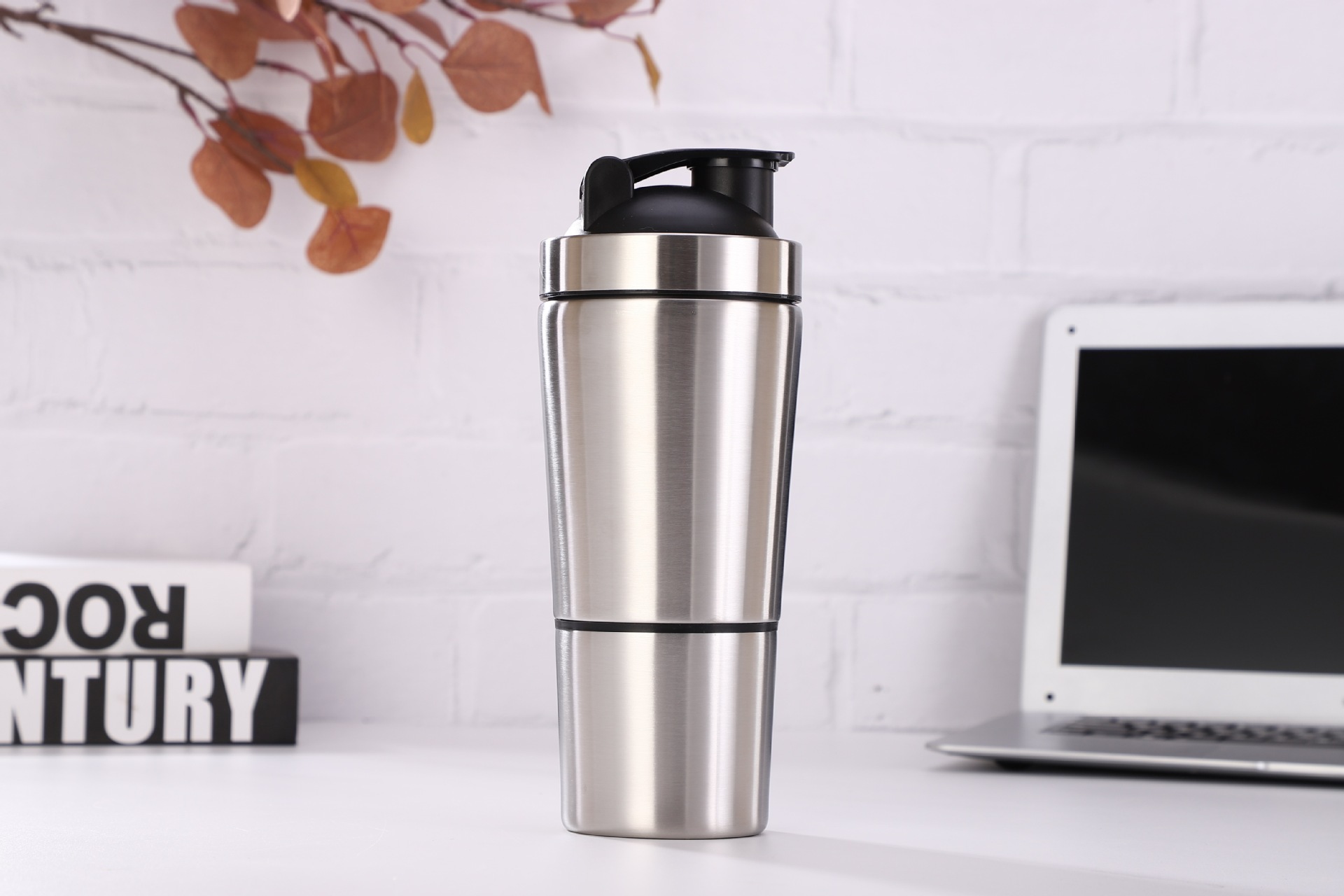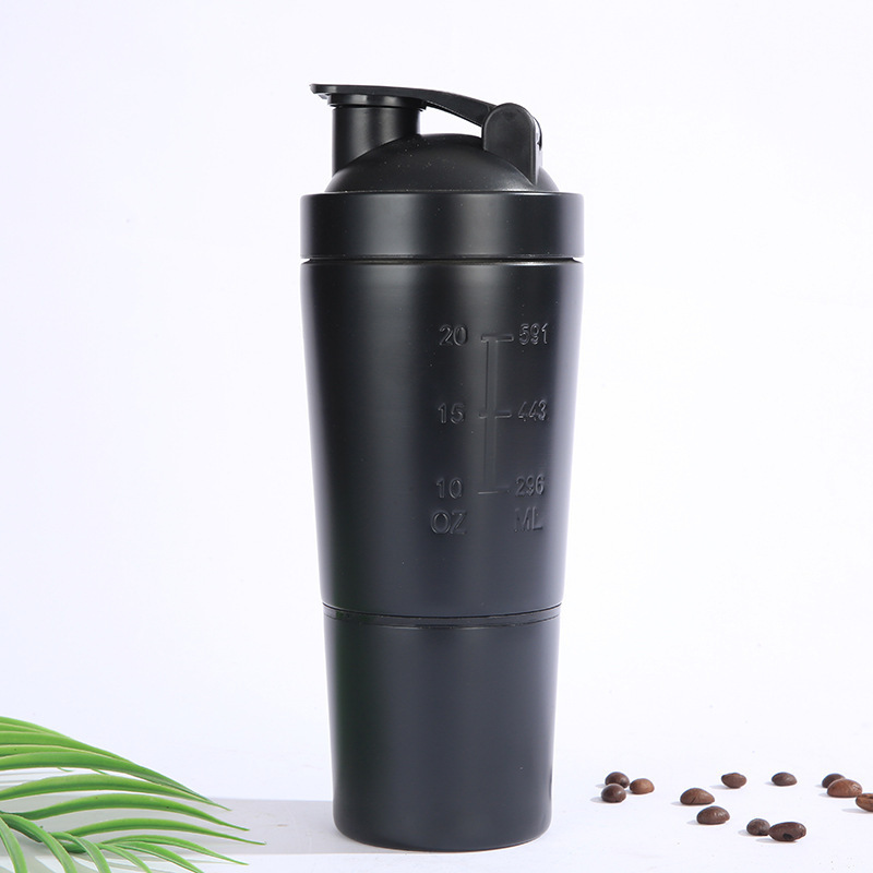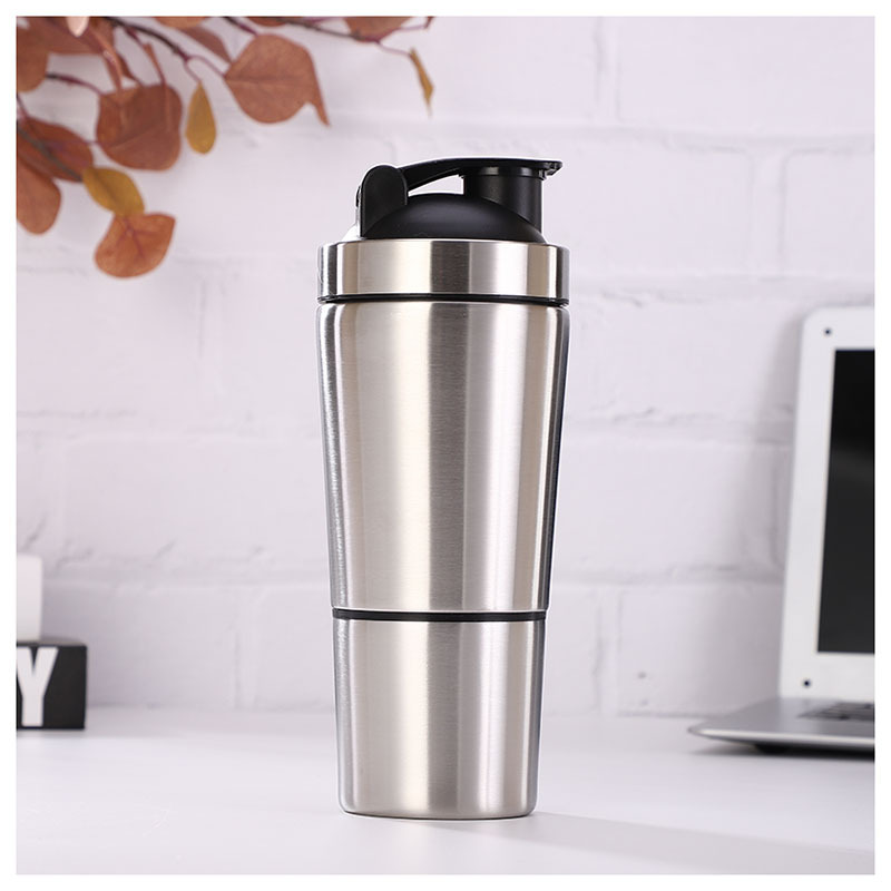스케일 피트니스 단백질 파우더 컵 진공 밀크 쉐이크 스포츠 쉐이크 컵이있는 싱글 레이어 더블 섹션 스테인레스 스틸 워터 컵