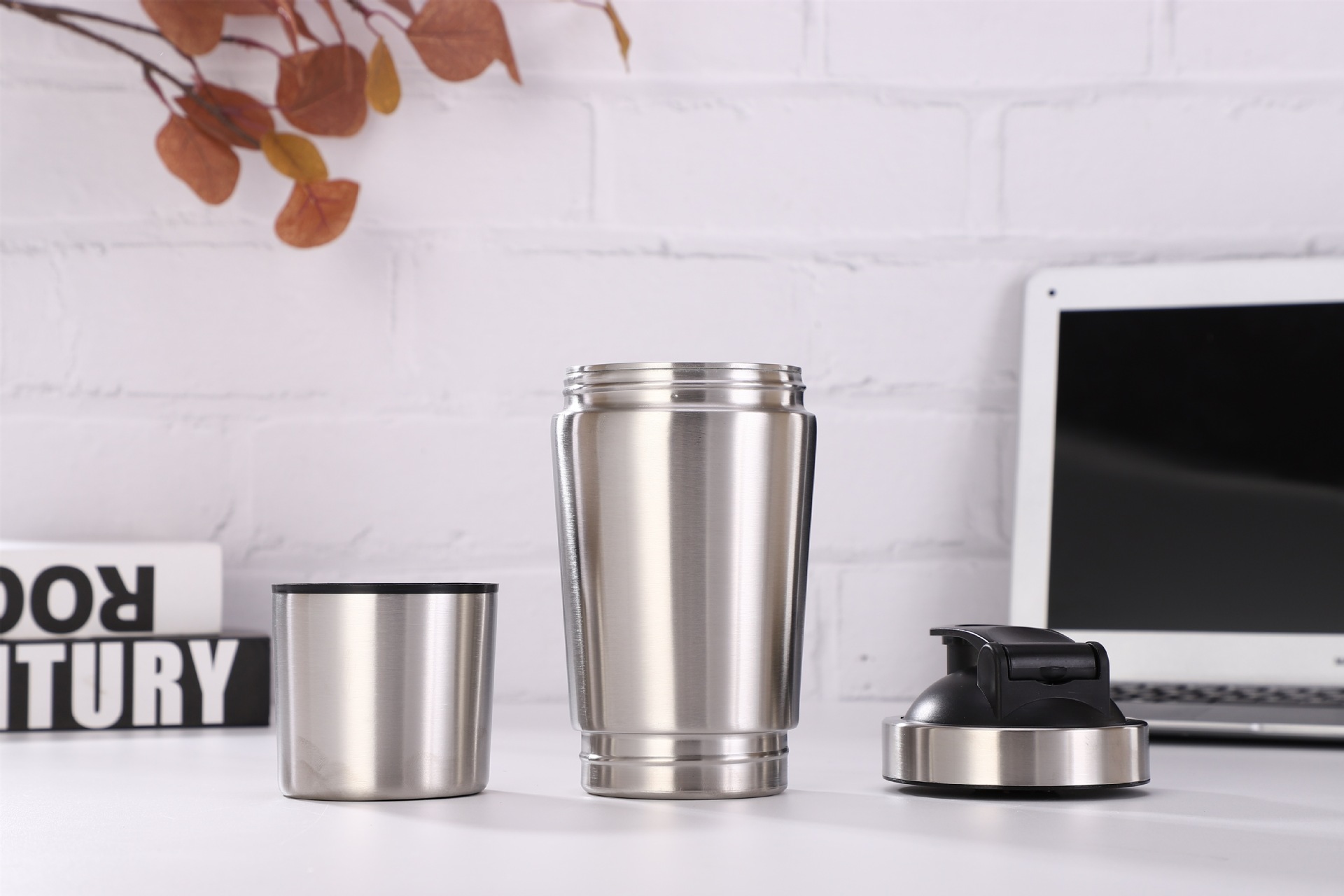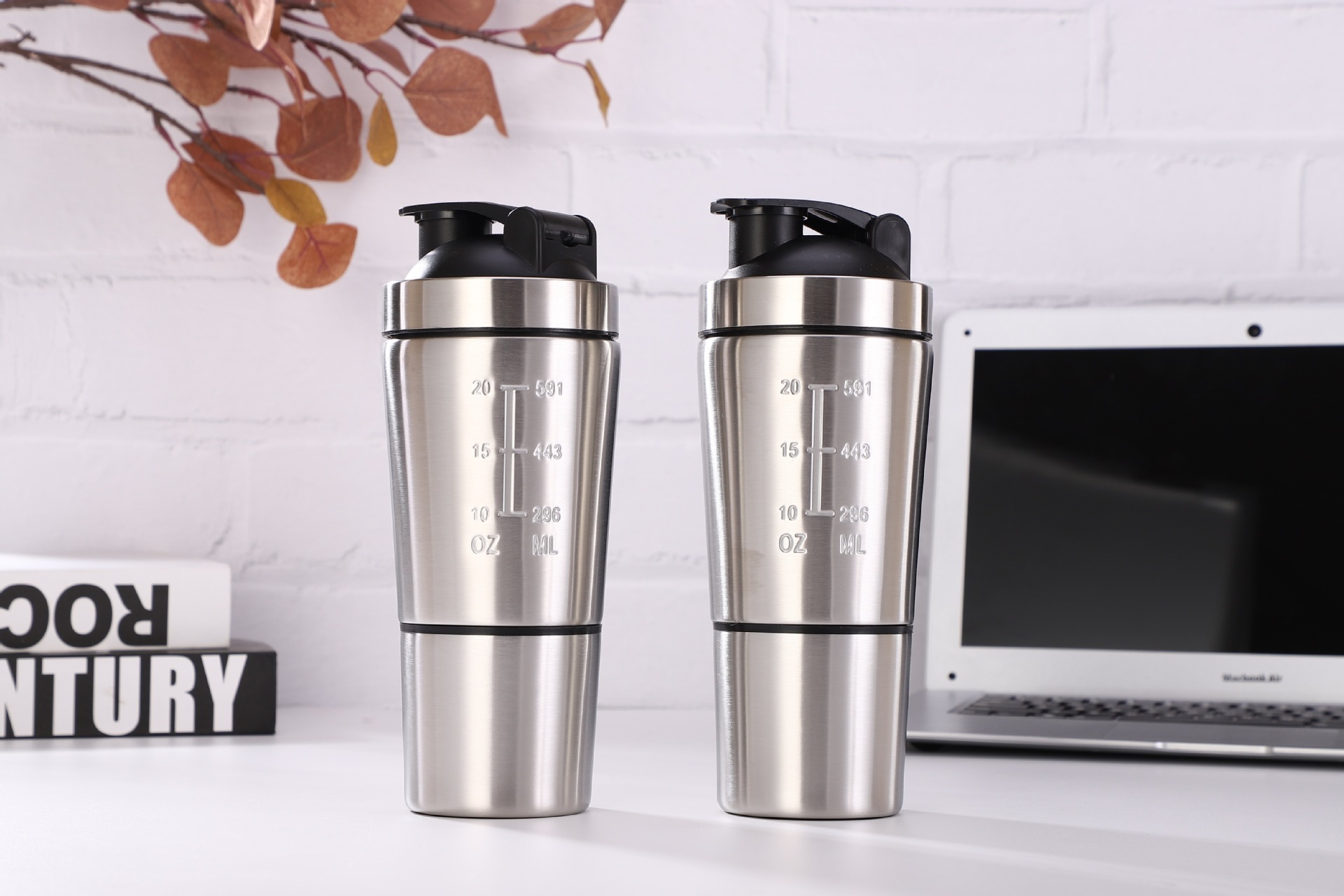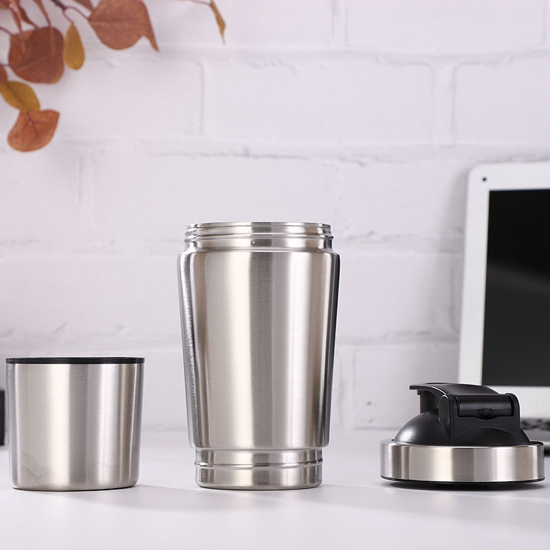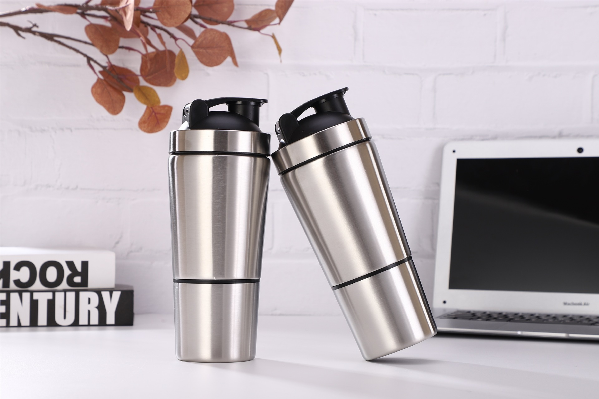 스케일 피트니스 단백질 파우더 컵 진공 밀크 쉐이크 스포츠 쉐이크 컵이있는 싱글 레이어 더블 섹션 스테인레스 스틸 워터 컵