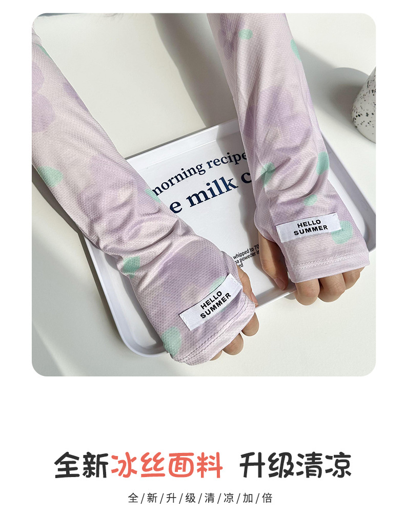 꽃무늬 자외선 차단 아이스 실크 소매 여성용 한국 스타일 인스 루즈핏 대형 루즈핏 스플라이싱 야외 운전 및 자전거 타기용 아이스 슬리브