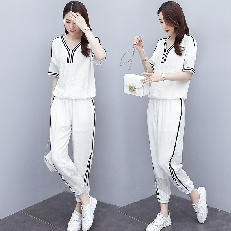 반소매 블랙 한국식 캐주얼 세트 스포츠웨어 여성의 2024 여름 새로운 대형 패션 투피스 세트스토어 가기
