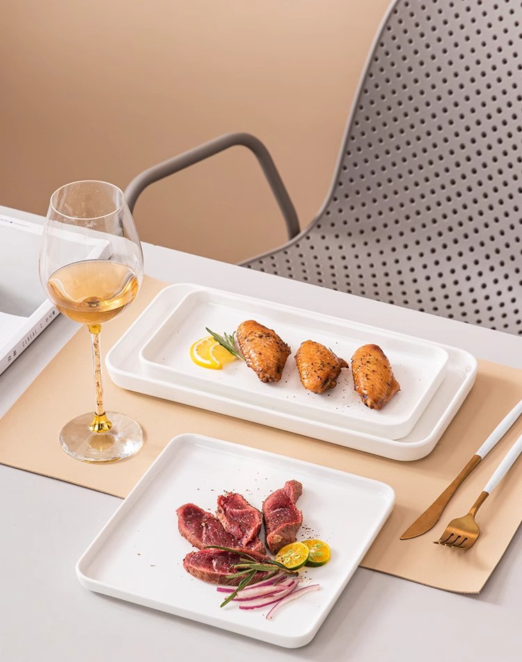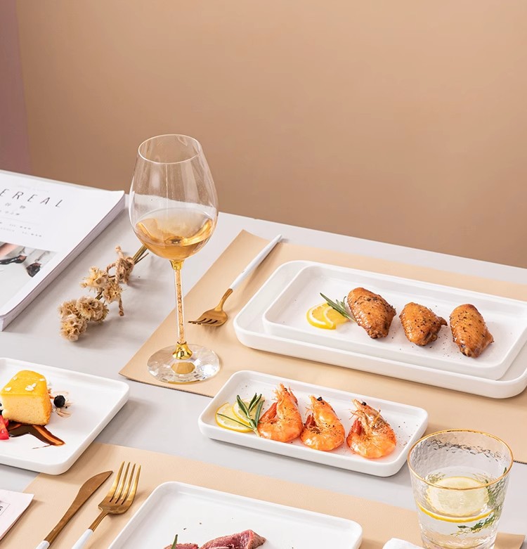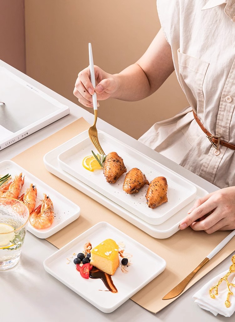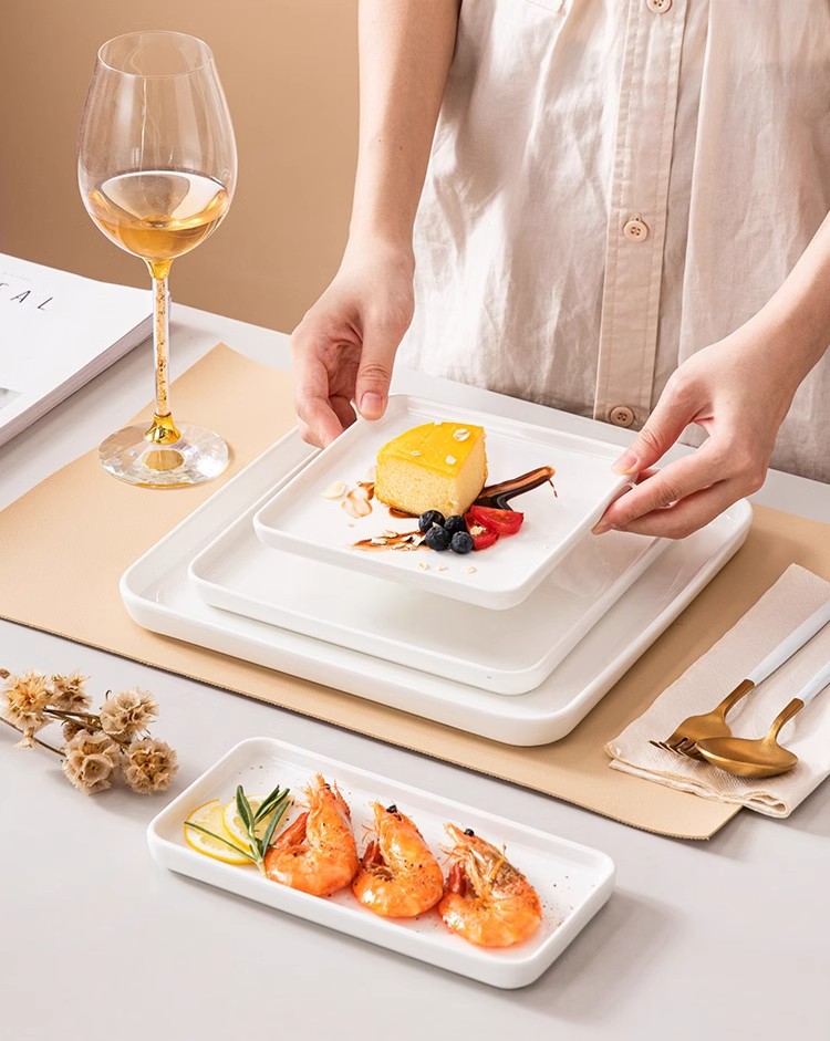 북유럽 레스토랑 접시 플랫 플레이트 가정용 세라믹 아침 식사 플레이트 화이트 웨스턴 플레이트 직사각형 초밥 플레이트 상업