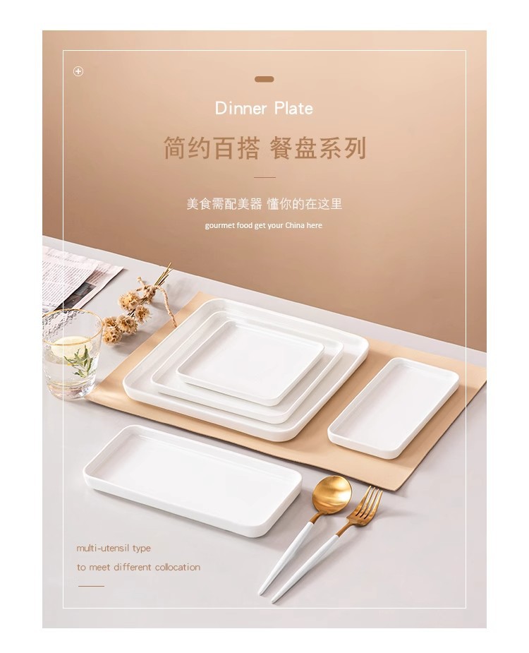 북유럽 레스토랑 접시 플랫 플레이트 가정용 세라믹 아침 식사 플레이트 화이트 웨스턴 플레이트 직사각형 초밥 플레이트 상업스토어 가기
