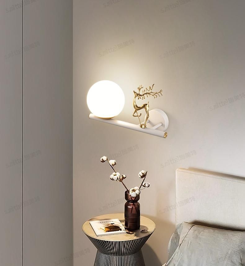 벽 램프 침실 램프 앤틀러 빛 럭셔리 플래티넘 창조적 인 북유럽 간단한 현대 거실 배경 벽 장식 램프